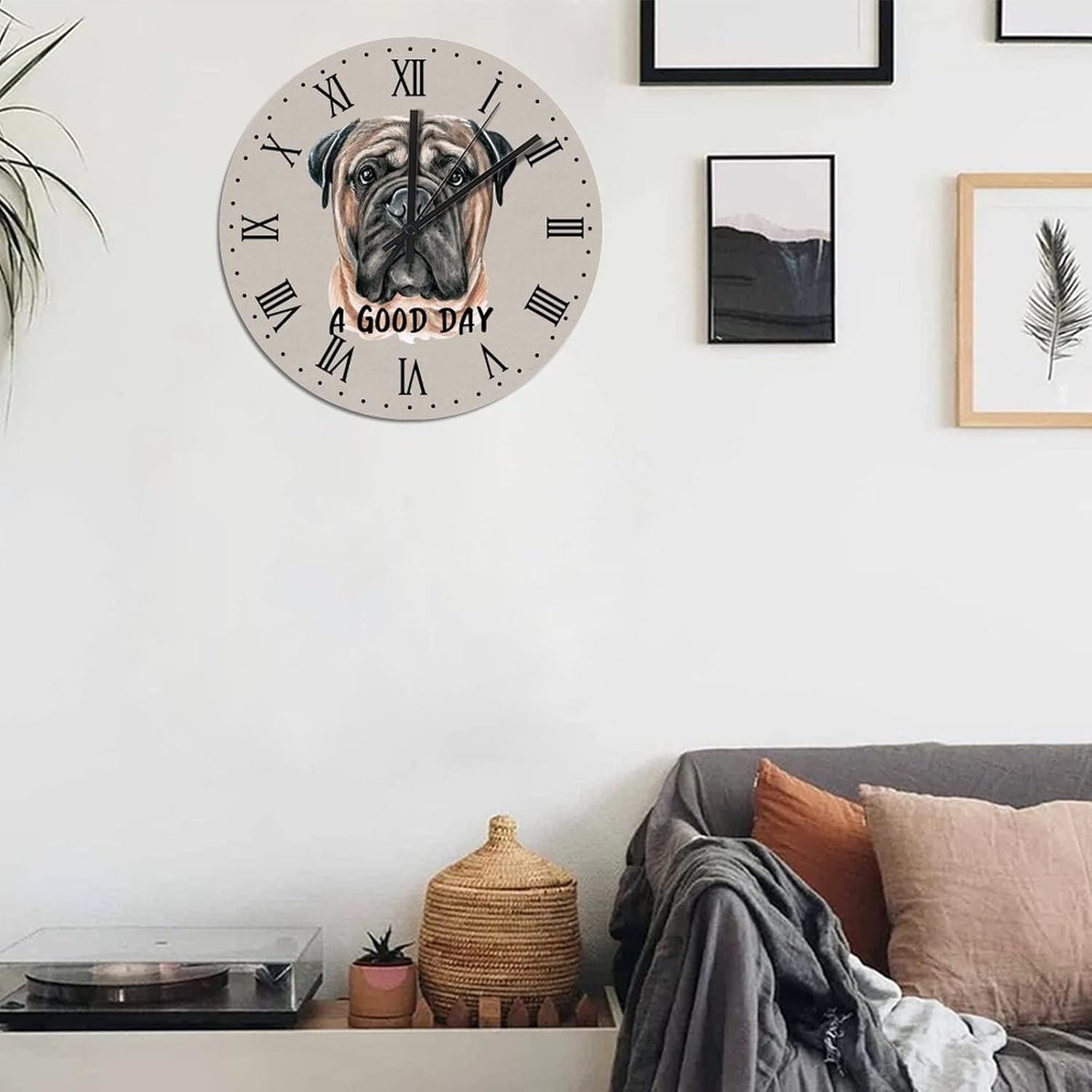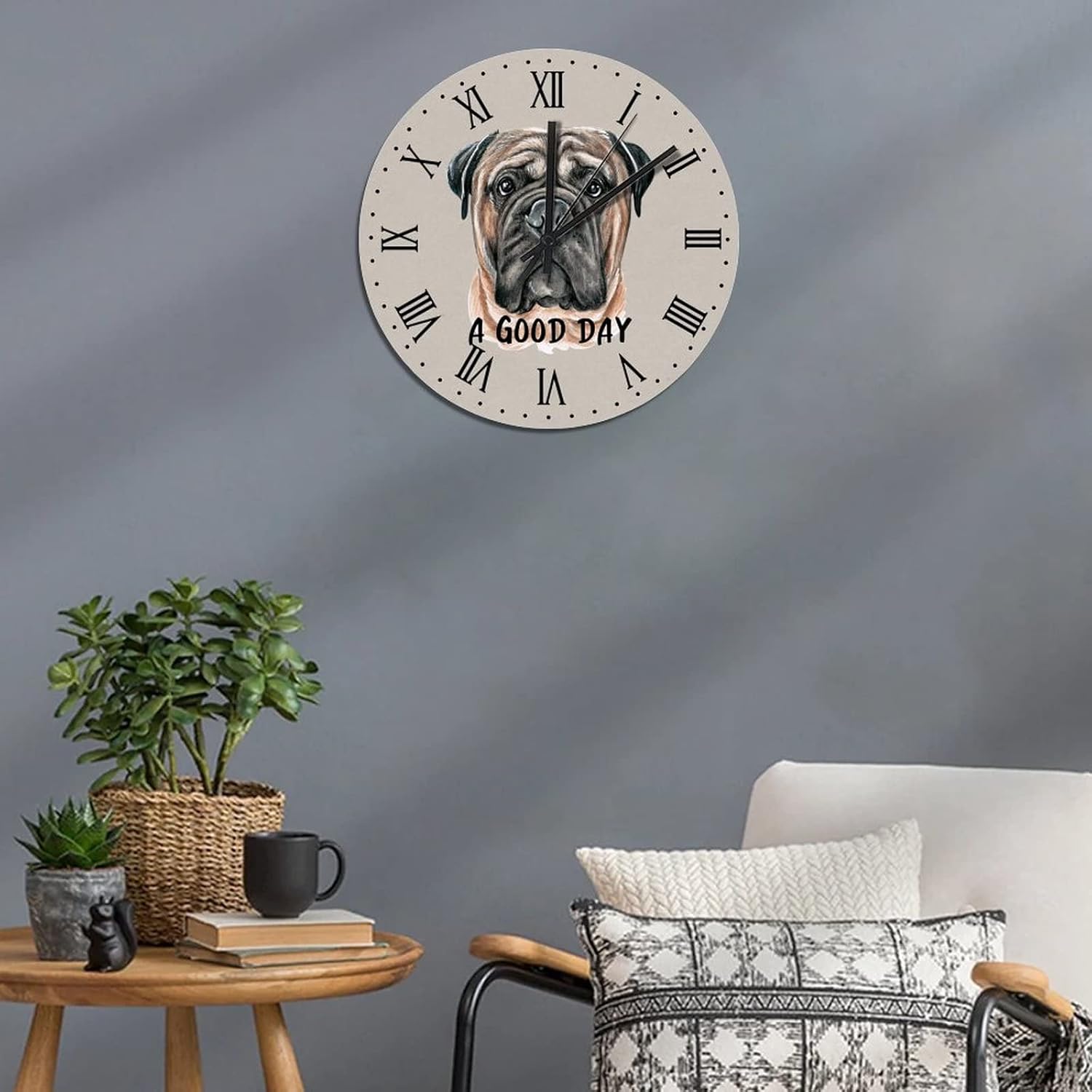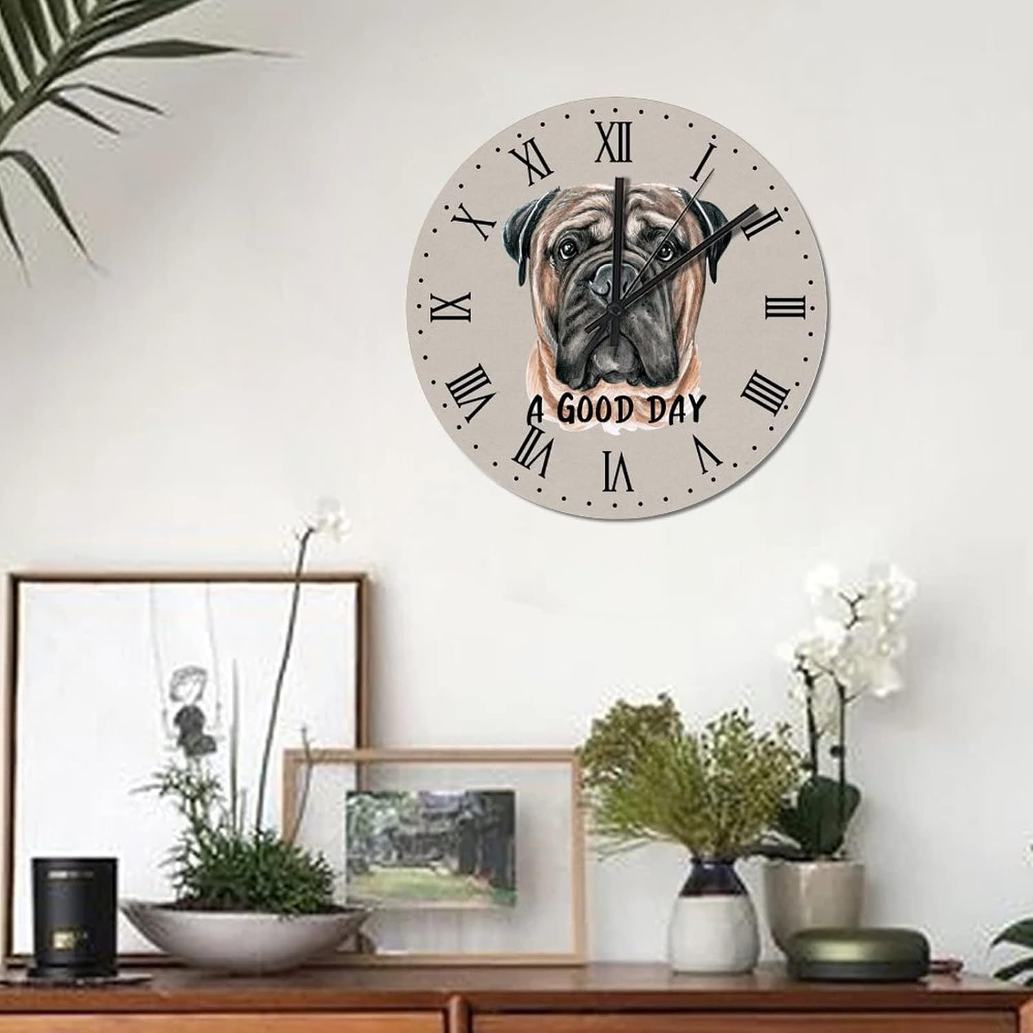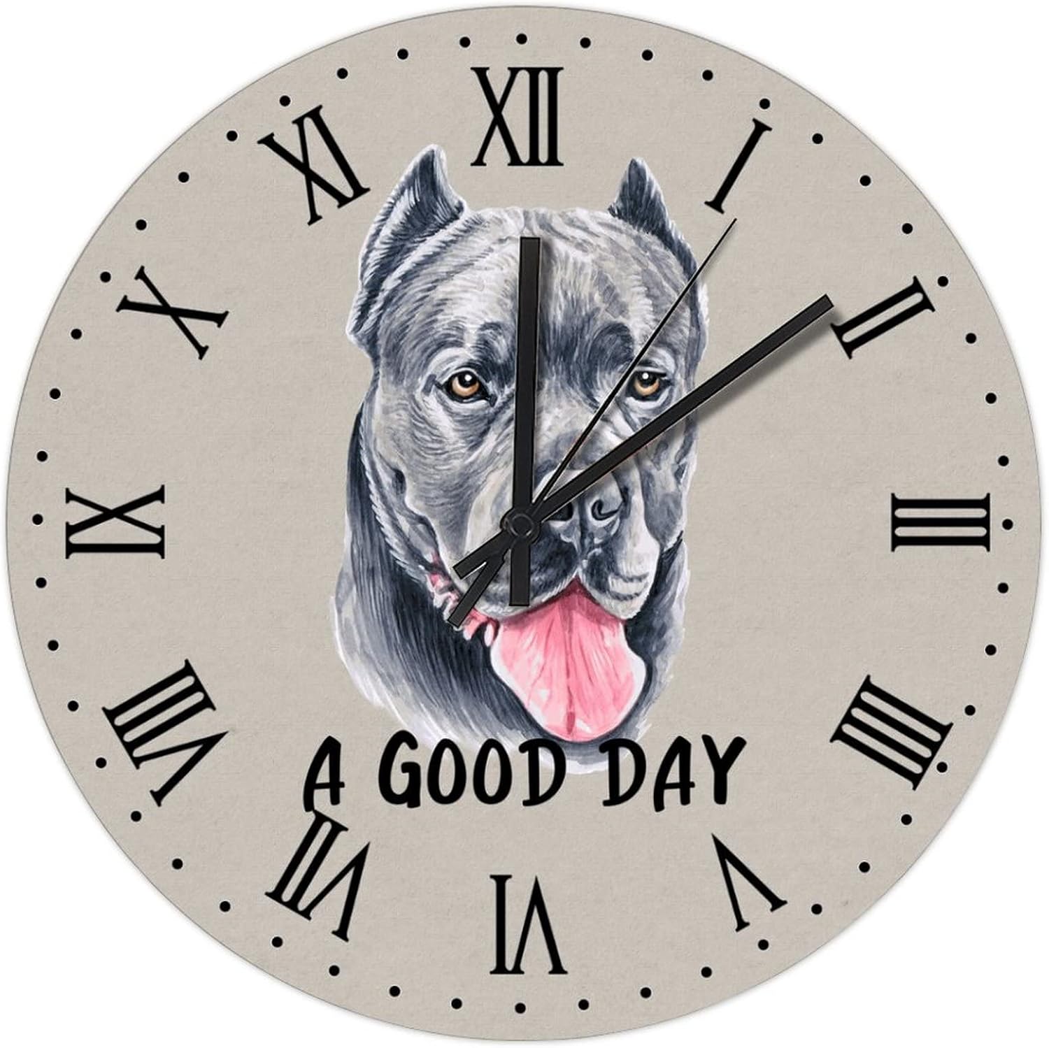 BESTORLOVE A Good Day Dog Wooden Clocks, Roman Numerals Silent Non-Ticking Wood Wall Clock, 15″ x 15″ Round Wall Clock Decor for Home Living Room Bedroom Office Ship from US