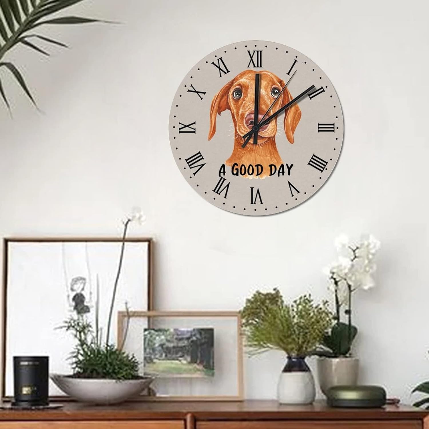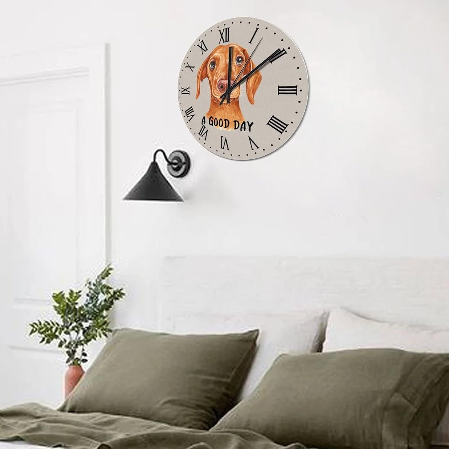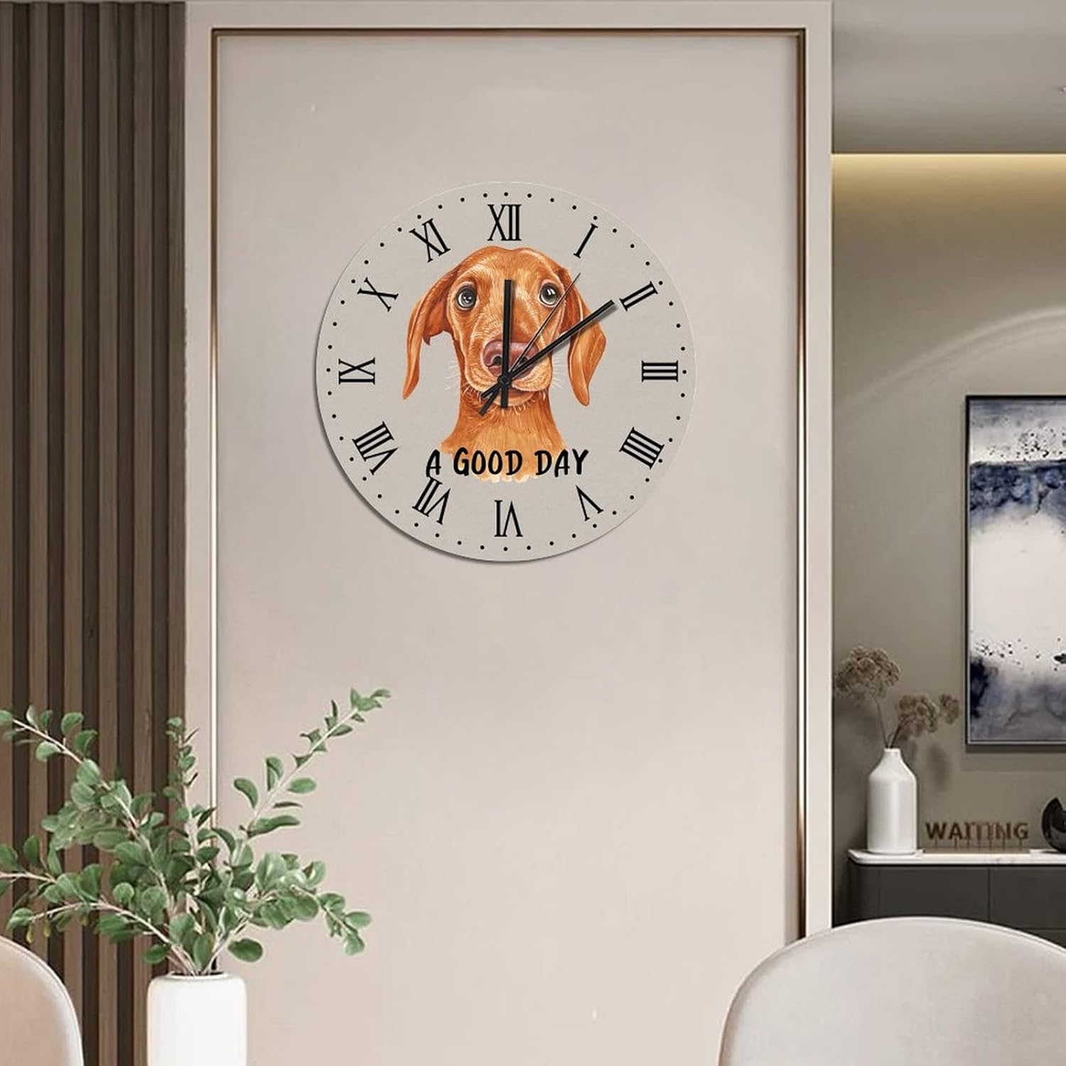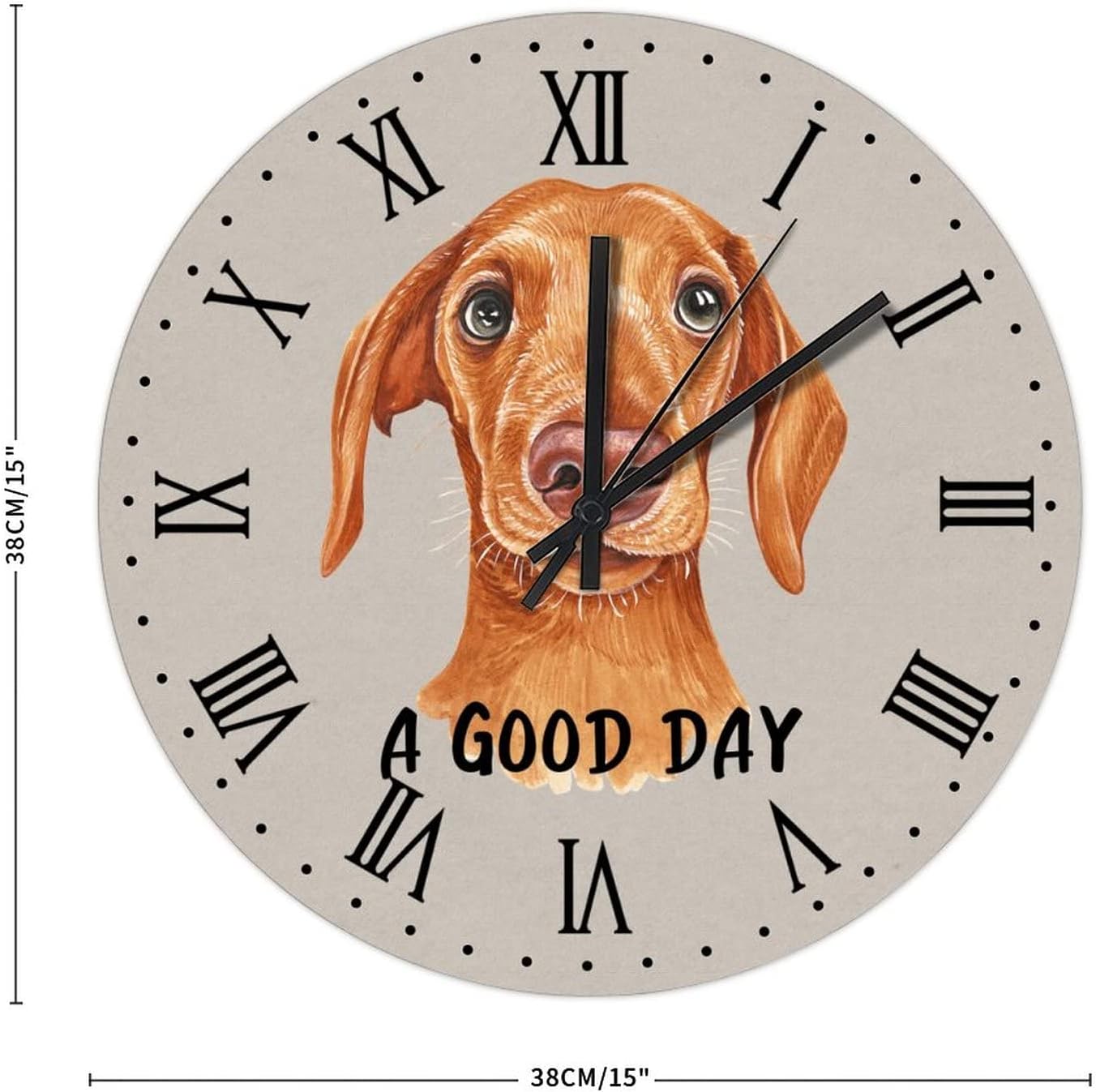 BESTORLOVE Custom Silent Non-Ticking Wood Wall Clock A Good Day Dog Wooden Clocks 15″ x 15″ Round Wall Clock for Living Room Bedroom Kitchen Home Decorations Ship from US