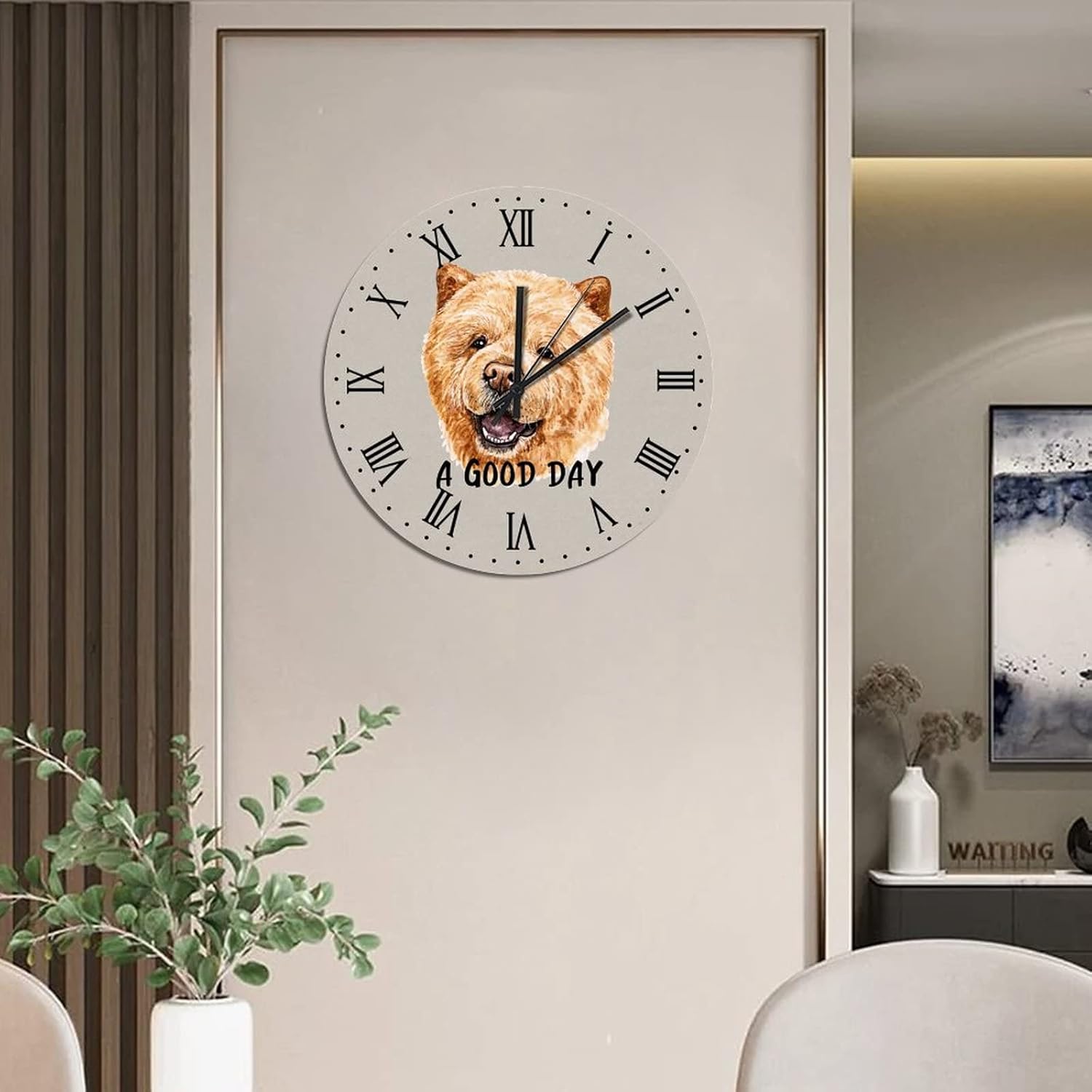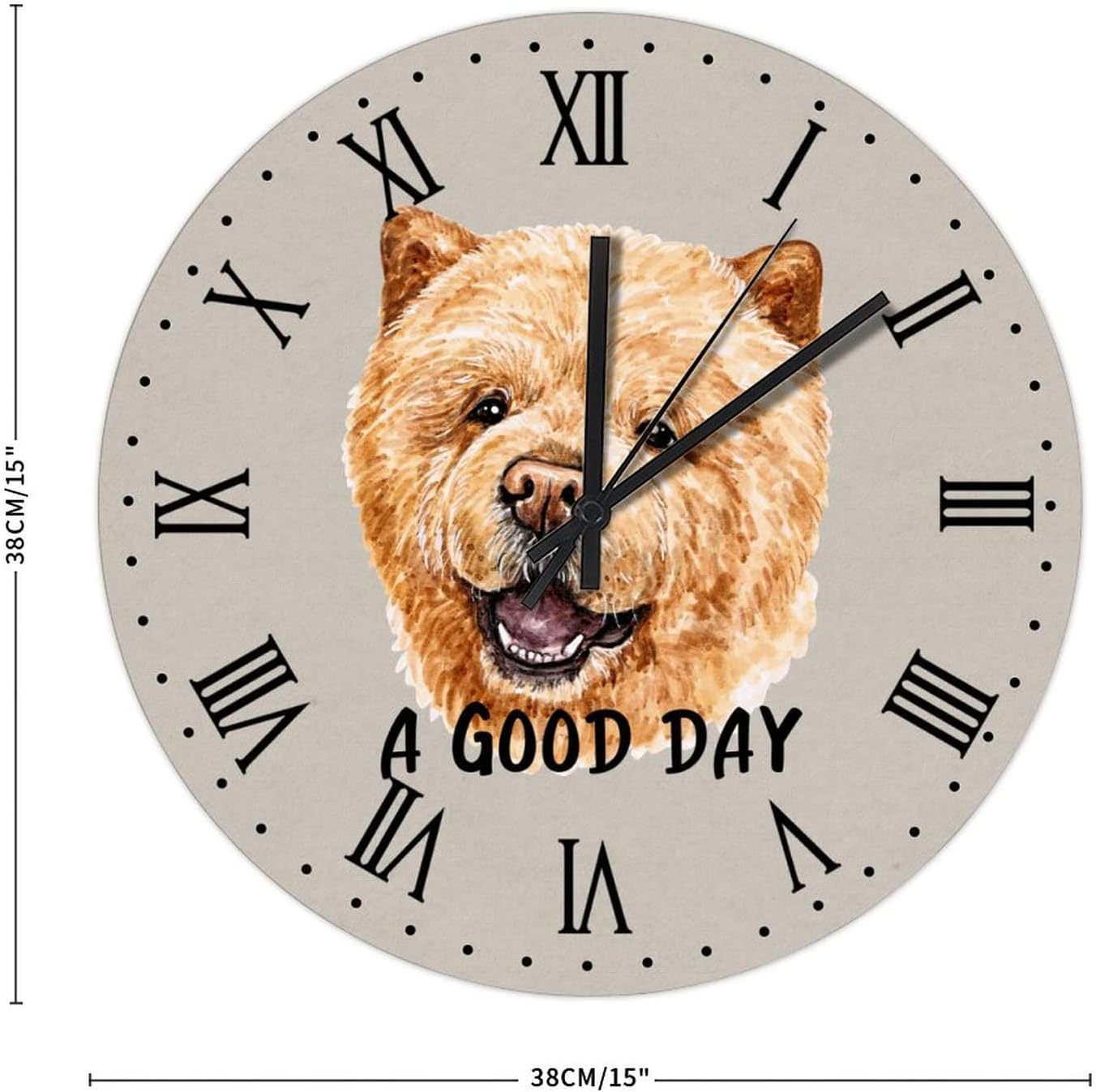 BESTORLOVE Cute Silent Non-Ticking Wood Wall Clock A Good Day Dog Wooden Clocks 15″ x 15″ Round Wall Clock for Living Room Bedroom Home Decorations Ship from US