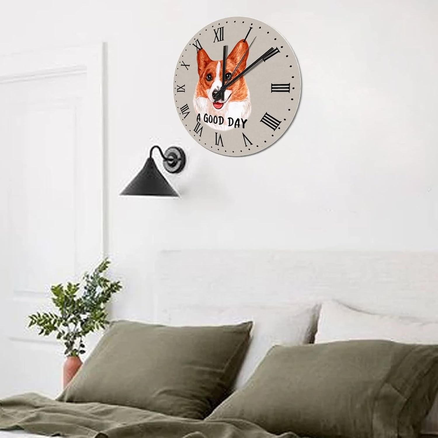 BESTORLOVE Funny Silent Non-Ticking Wood Wall Clock A Good Day Dog Wooden Clocks 15″ x 15″ Round Wall Clock Home Decor Art for Living Room Kitchen Bedroom Ship from US
