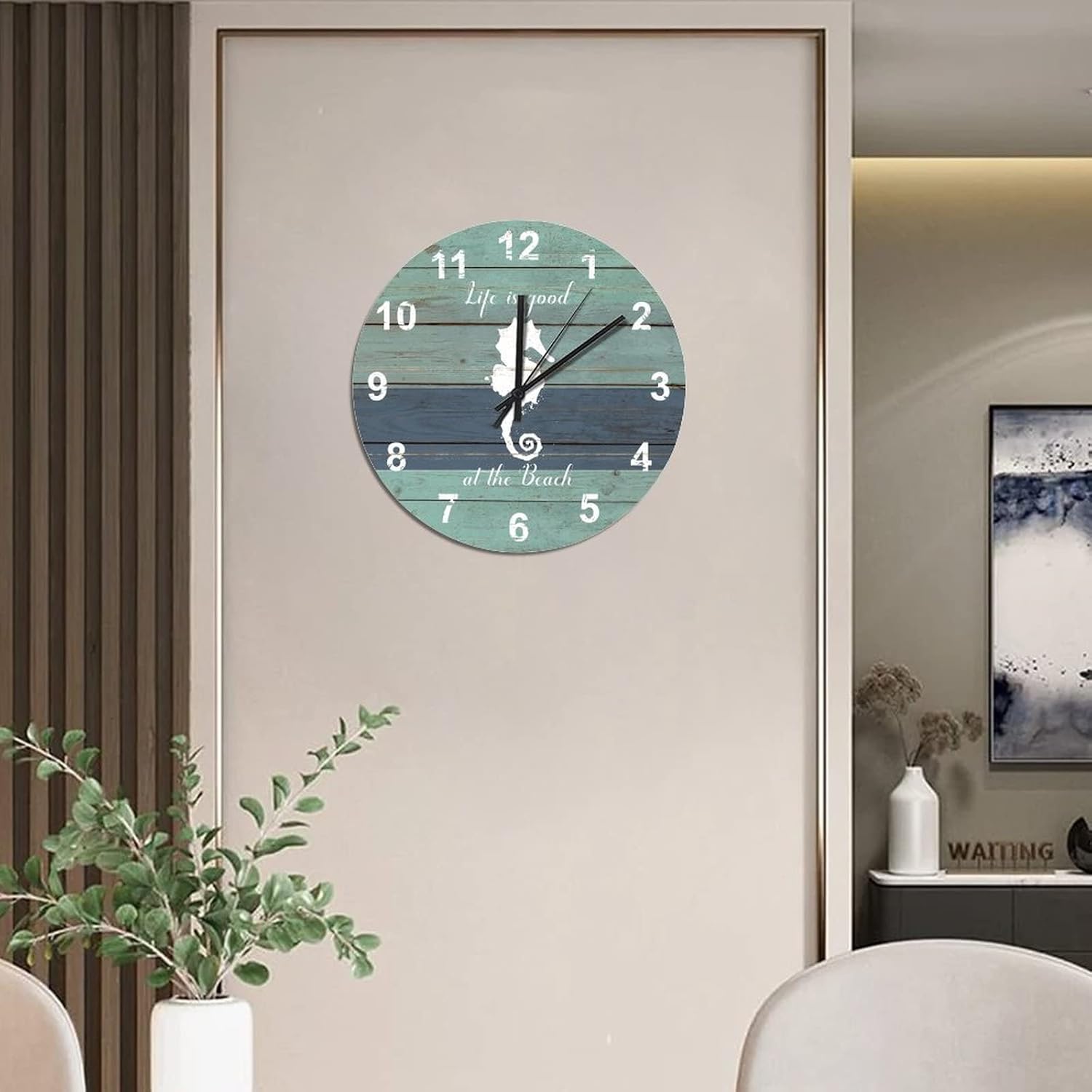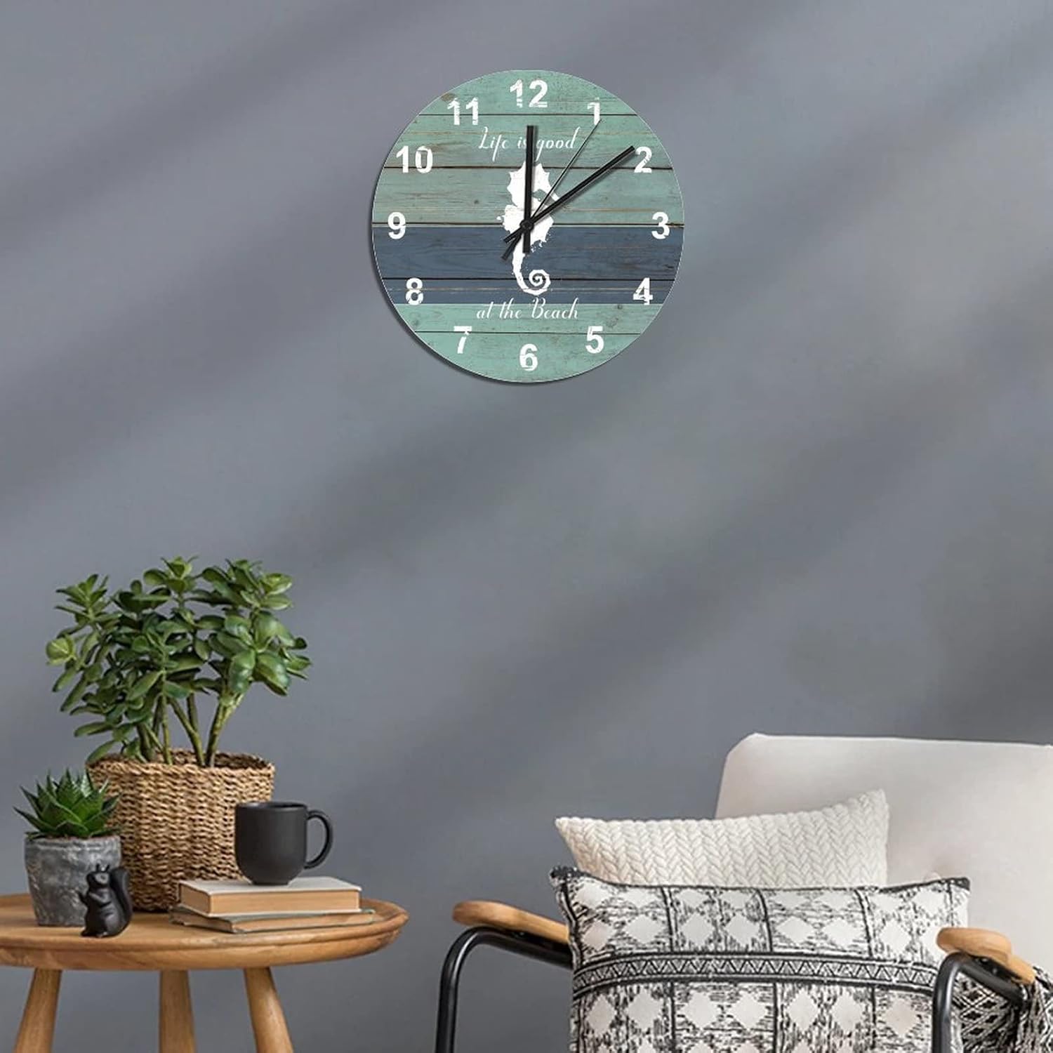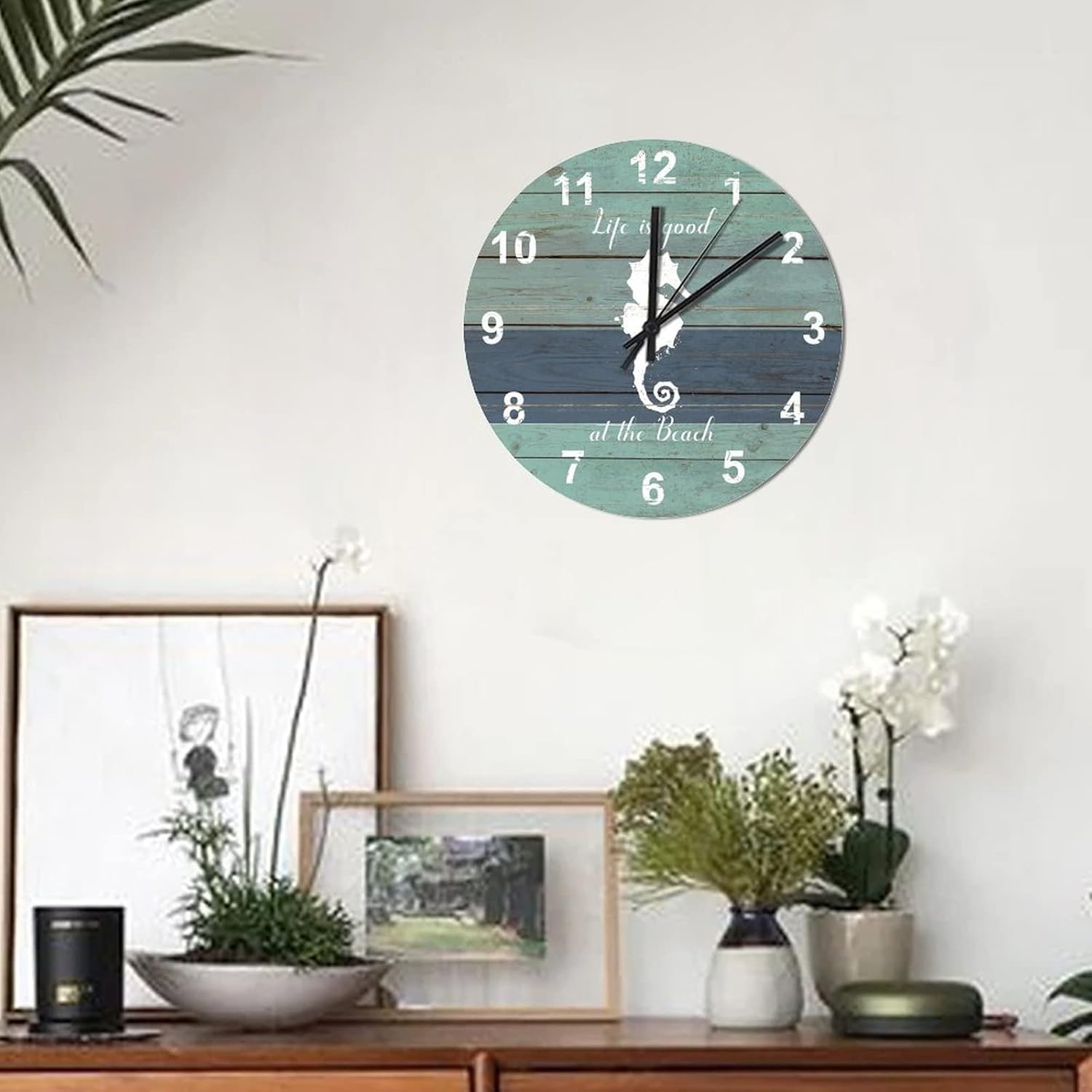 BESTORLOVE Good Silent Non-Ticking Wood Wall Clock Nautical Wooden Clocks 12″ x 12″ Round Wall Clock Decor for Home Living Room Bedroom Office Ship from US