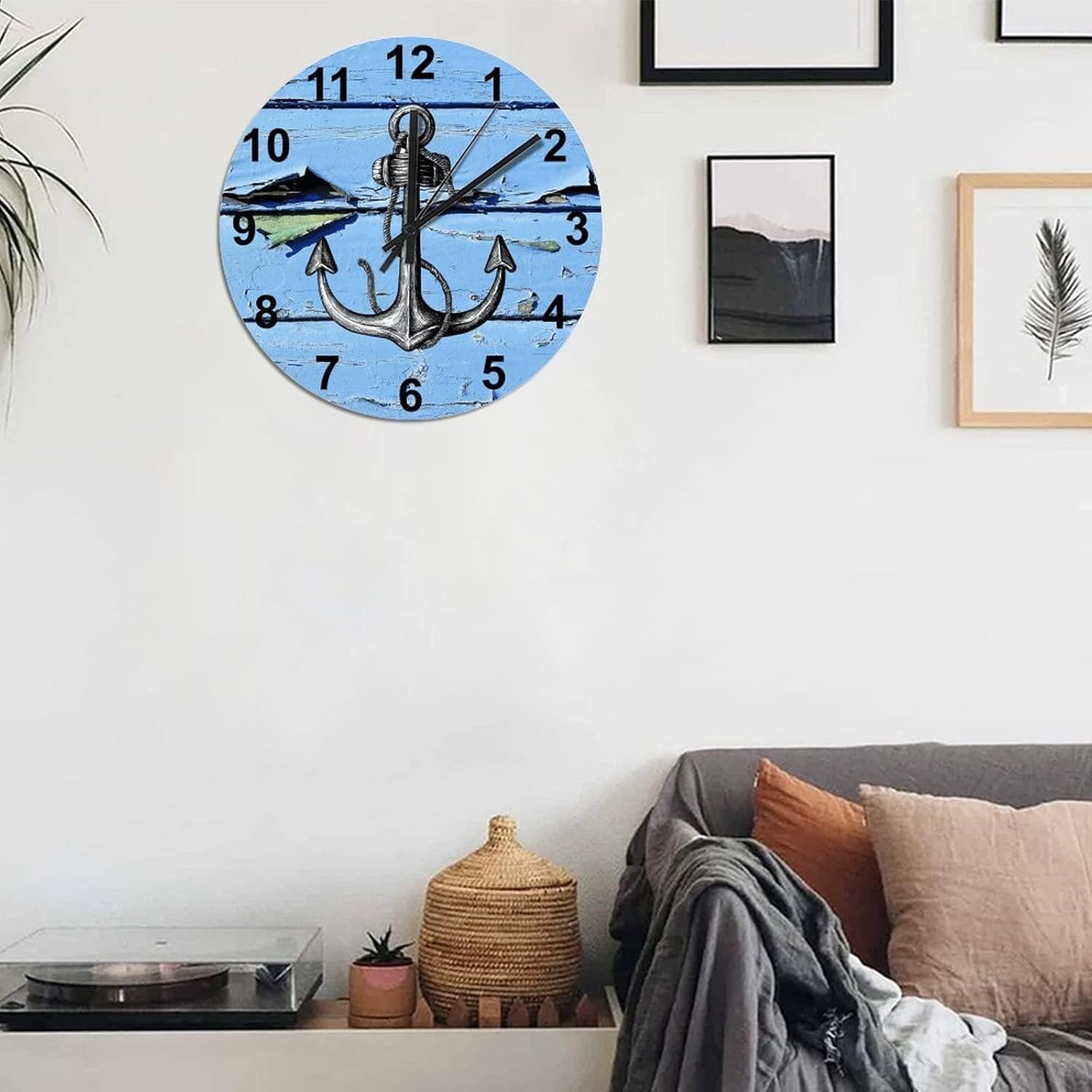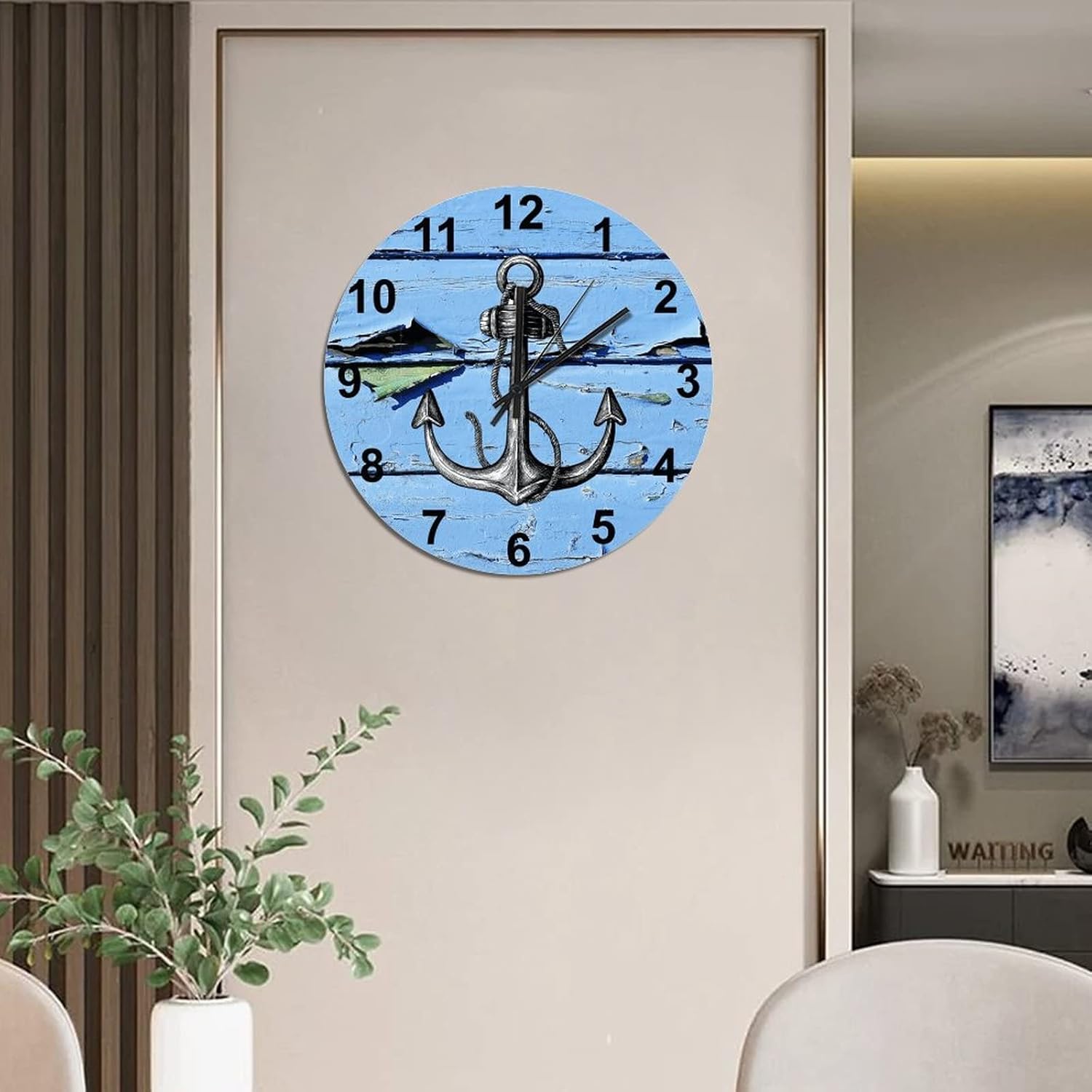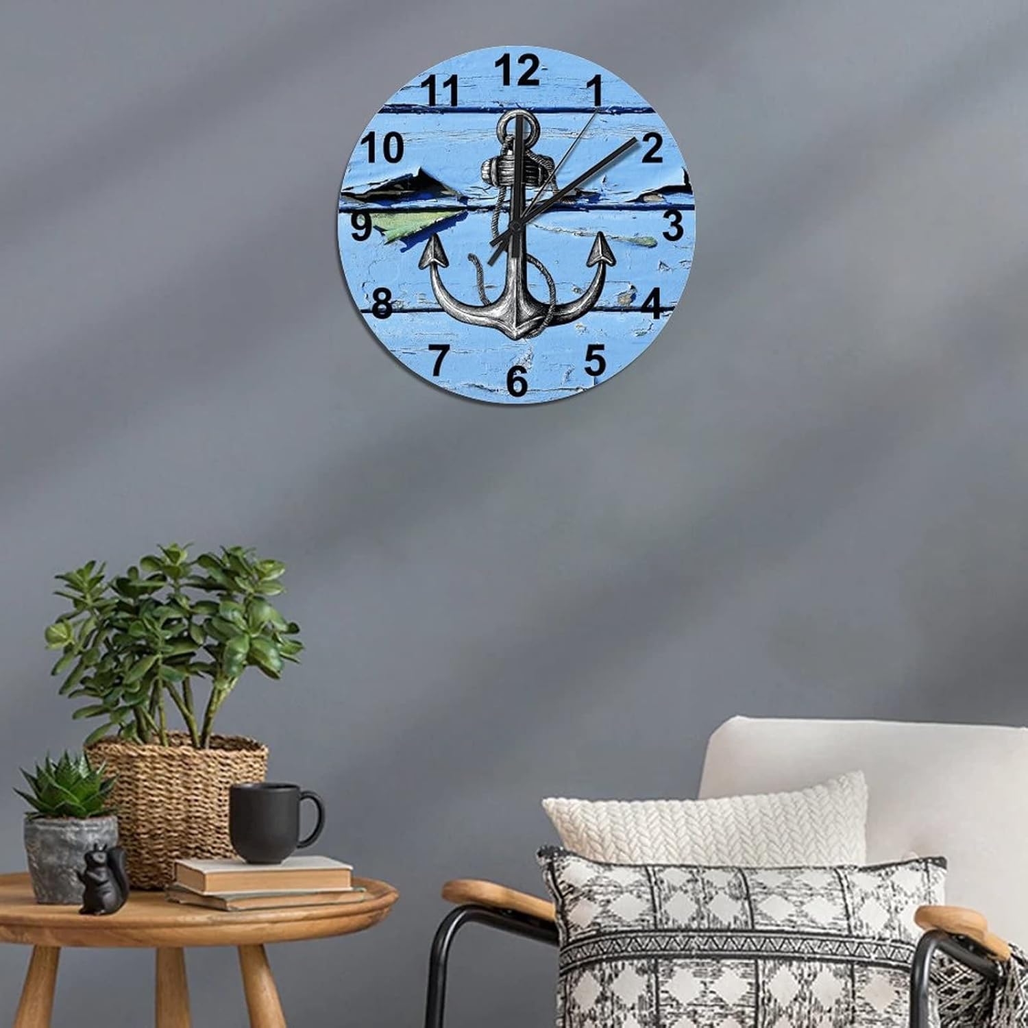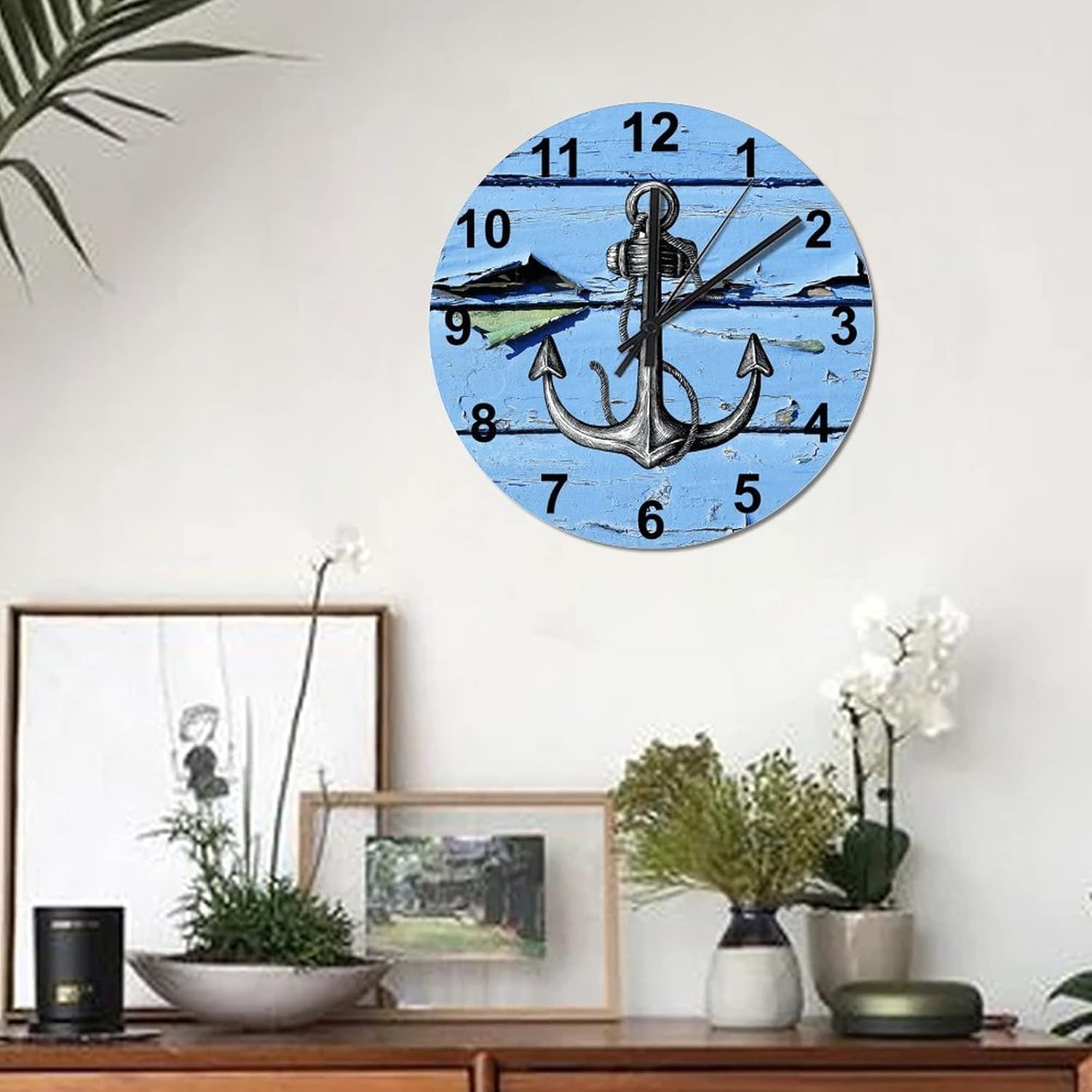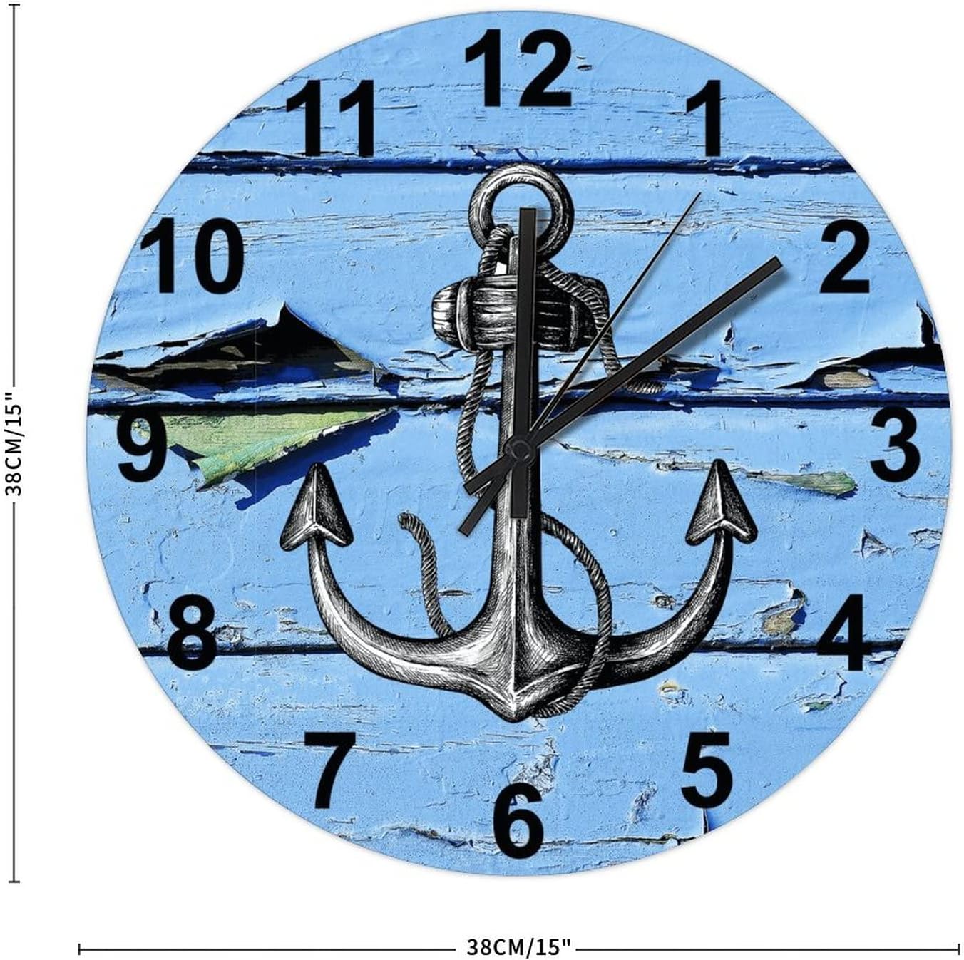 BESTORLOVE Good Silent Non-Ticking Wood Wall Clock Nautical Wooden Clocks 15″ x 15″ Round Wall Clock for Living Room Bedroom Kitchen Home Decorations Ship from US