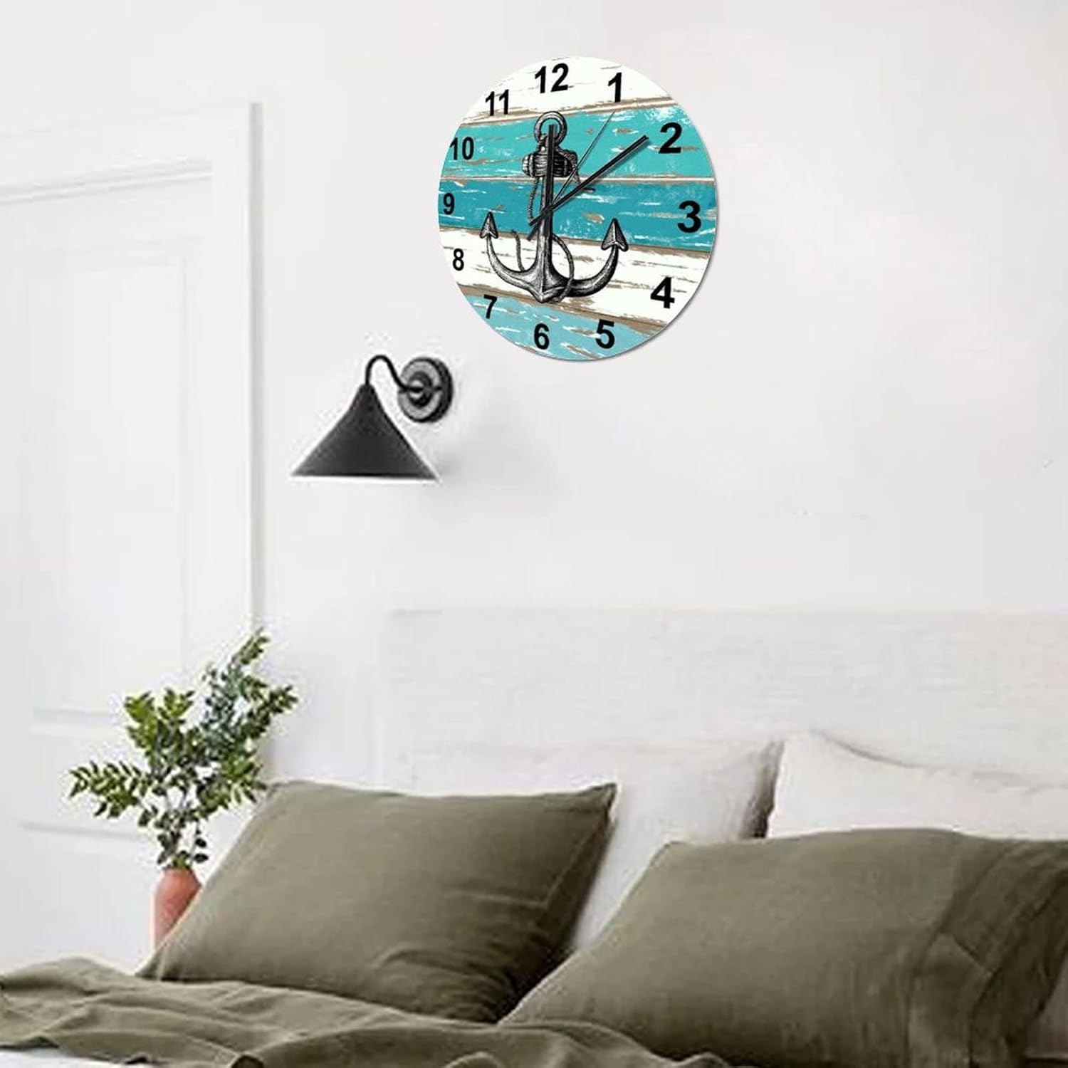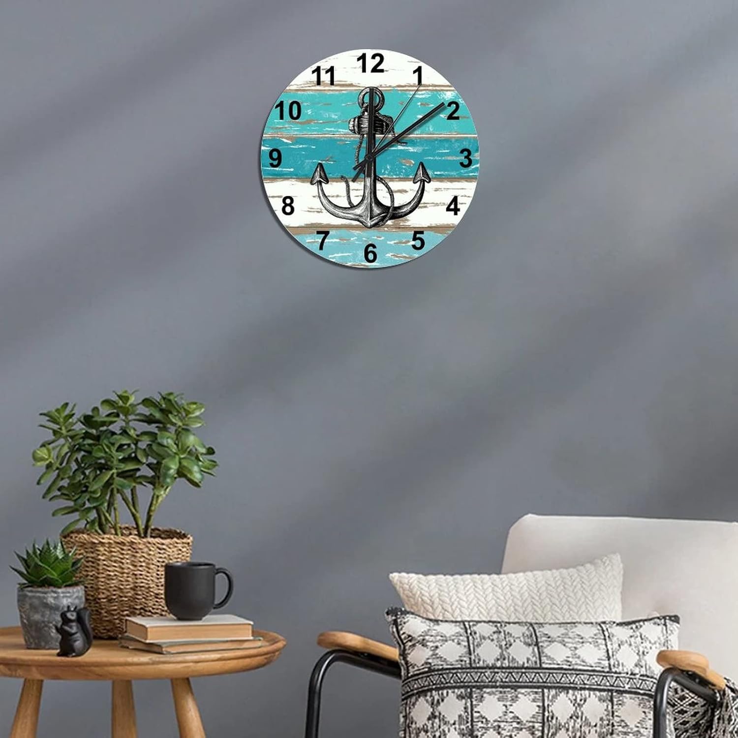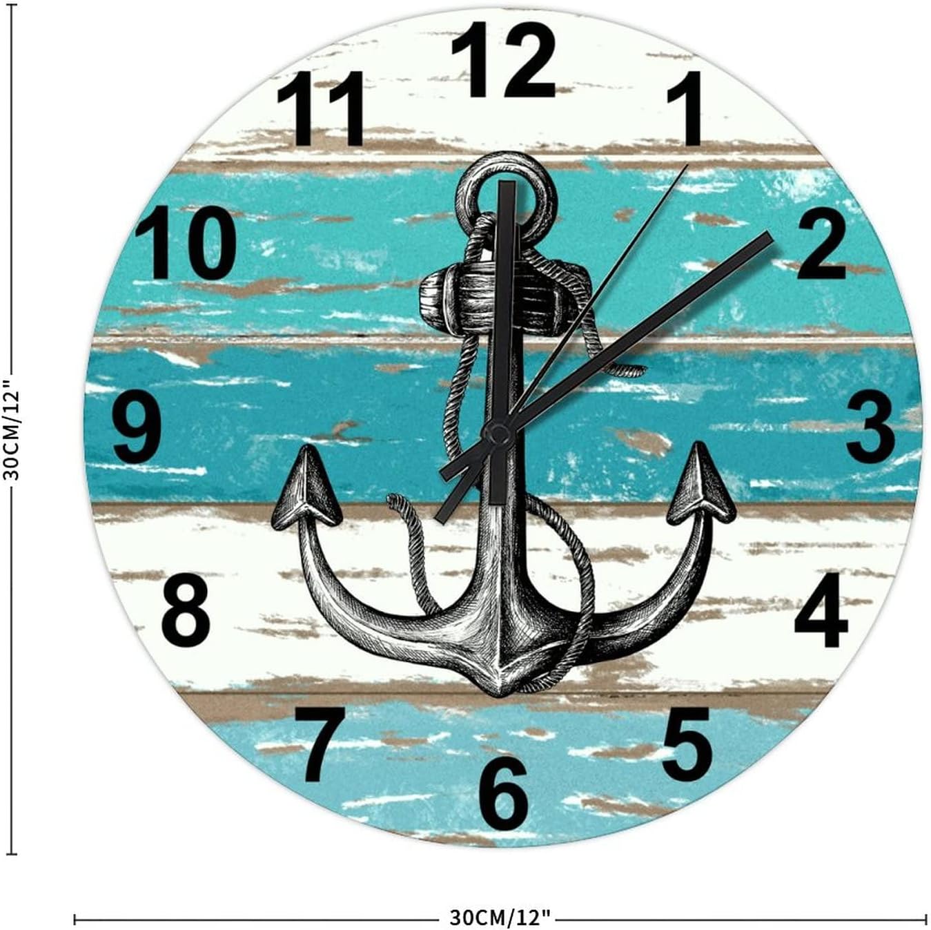 BESTORLOVE Good Wood Wall Clock Nautical Round Wall Clock Silent Non-Ticking 12″ x 12″ Wooden Clocks Decor for Home Living Room Bedroom Office Ship from US