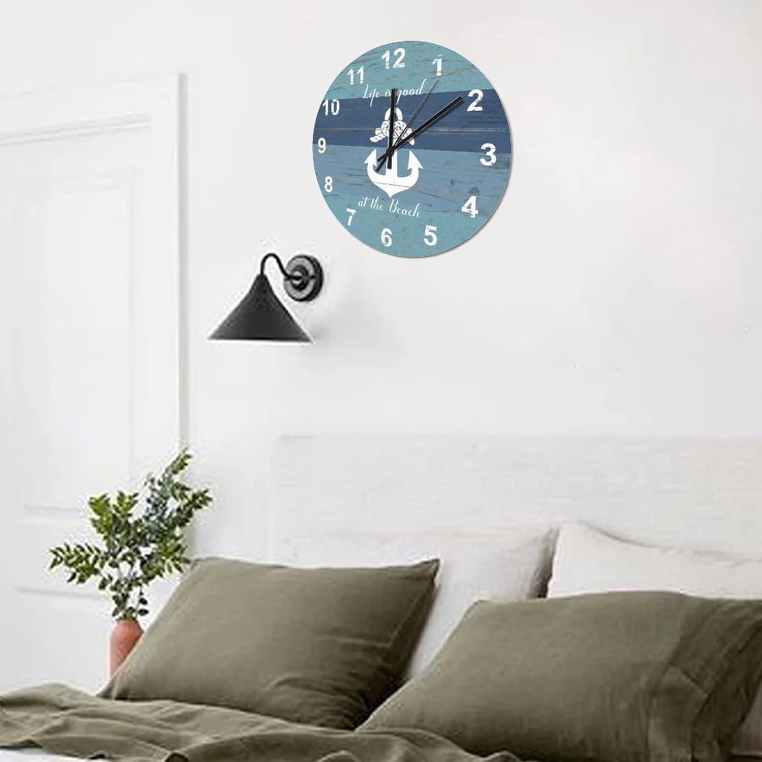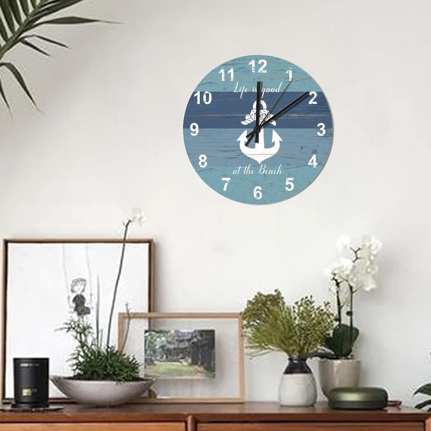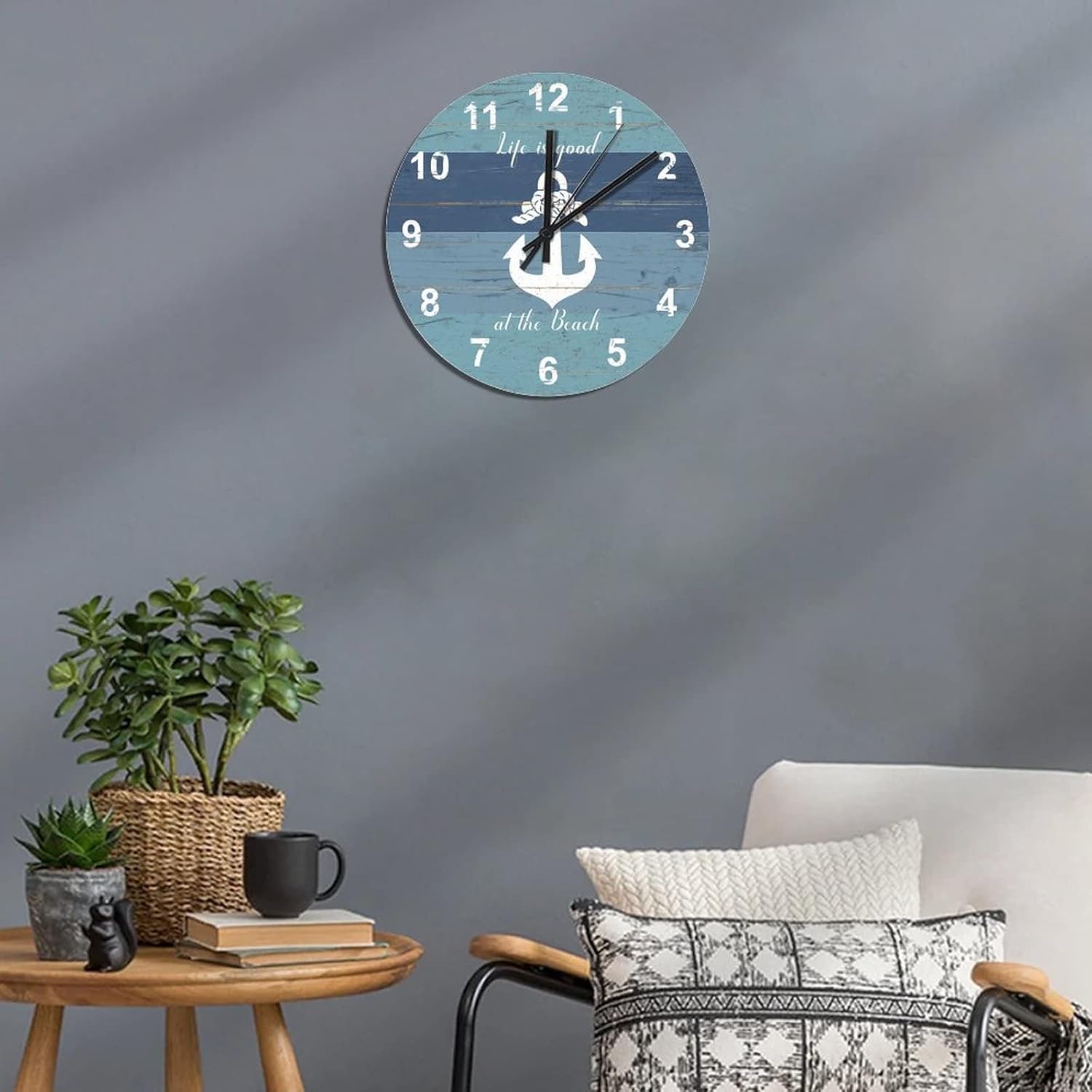 BESTORLOVE Good Wooden Clocks Nautical Wood Wall Clock Silent Non-Ticking 12″ x 12″ Round Wall Clock for Living Room Bedroom Kitchen Home Decorations Ship from US