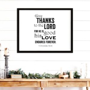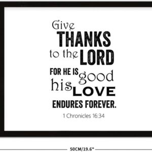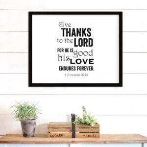 COCOKEN Give Thanks to The Lord, for He is Good 1 Chronicles 16 : 34 Wooden Plaque with Frame Quotes Sign Wood Framed 16″ x 20″ Word Art Printed Hanging Wall Art for Home Bedroom Kitchen Farmhouse