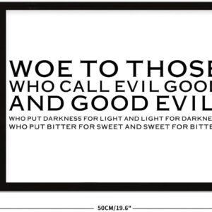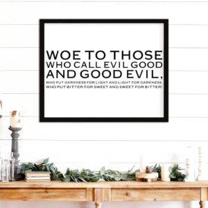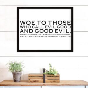 COCOKEN Woe to Those Who Call Evil Good and Good Evil Wooden Plaque with Frame, Quotes Sign Wood Framed, 16″ x 20″ Word Art Printed Hanging Wall Art for Home Bedroom Kitchen Farmhouse
