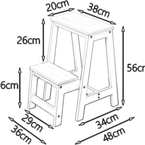 DASHADAO Indoor Climbing Stool, Household Goods 2 Steps Folding Step Ladder Wooden Ladder, Home Interior Stair Step Stool, Wooden Kitchen Step Chair Maximum Load 150Kg\/White (White)