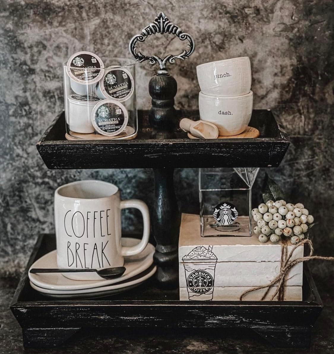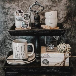 Maximizes counter space & adds flair & fun to your seasonal Coffee Bar!
