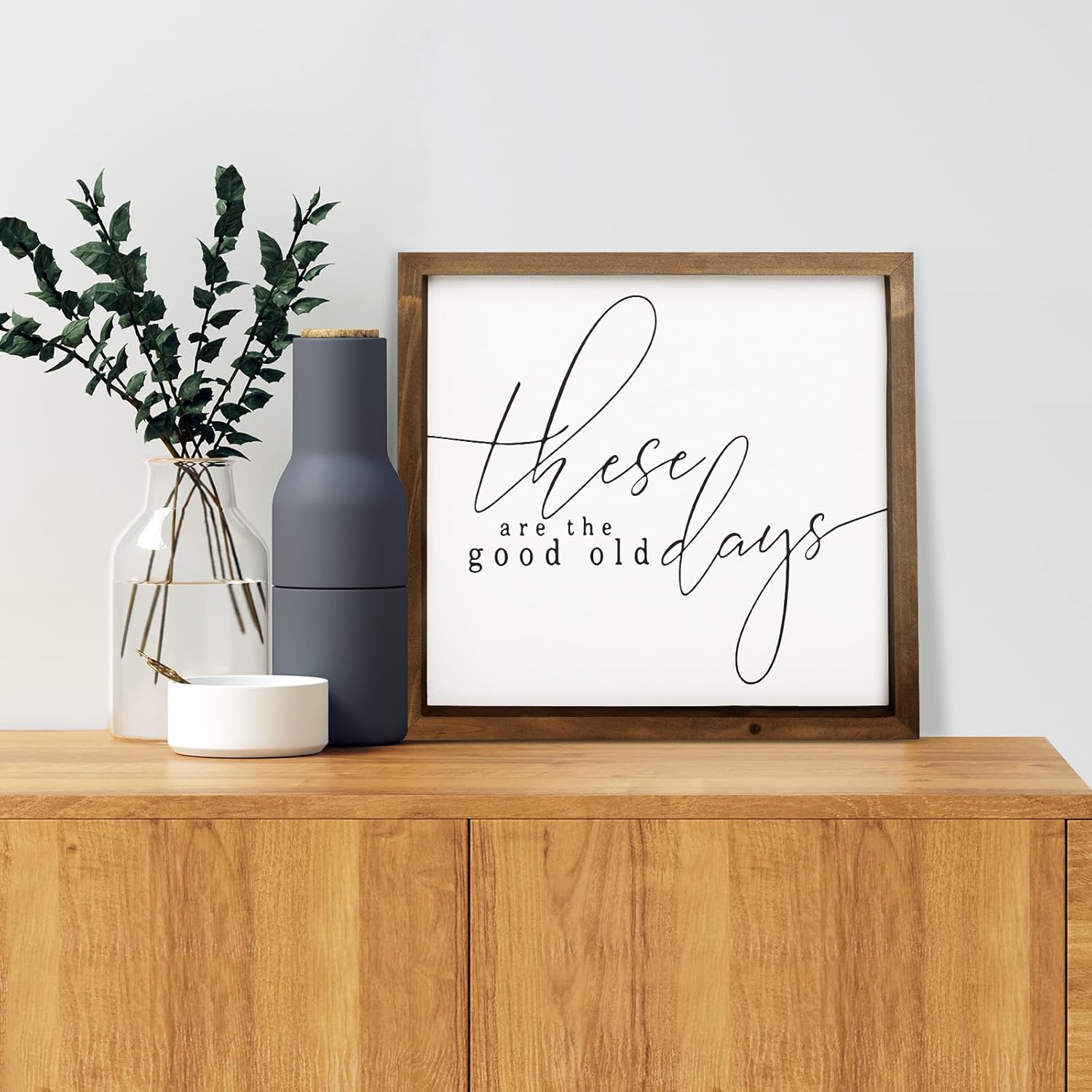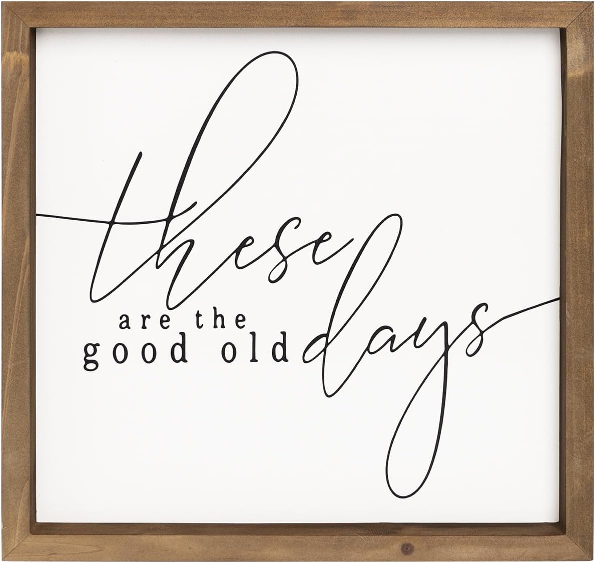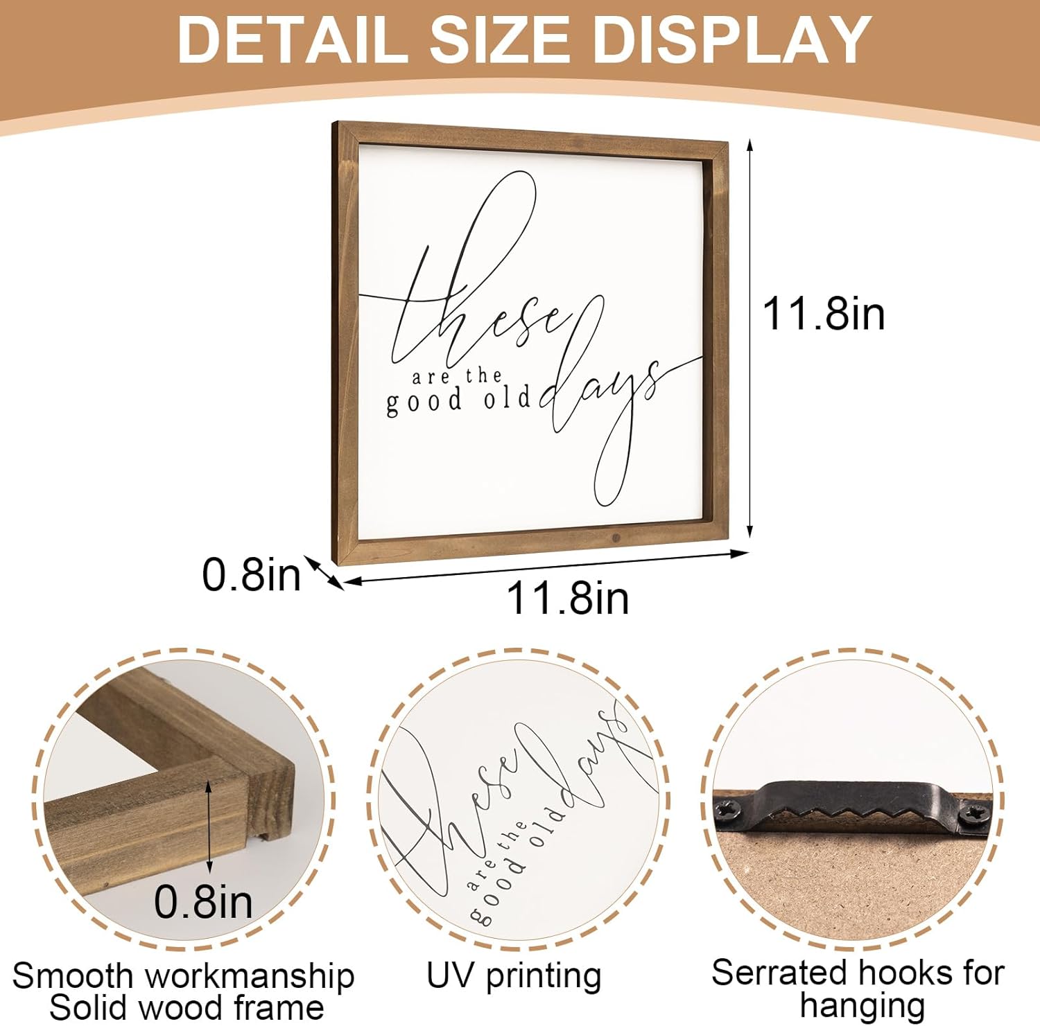 11.8×11.8In Wooden These Are The Good Old Days Sign, Motivational Quote Wall Art Home Bedroom Rustic Living Room Decoration