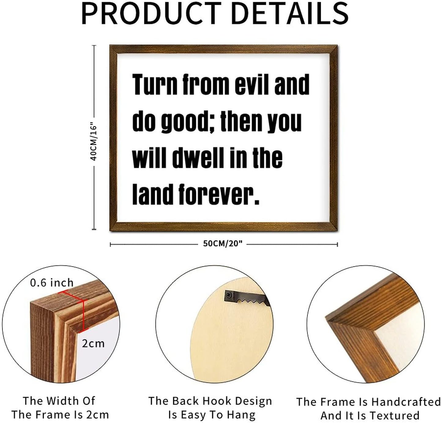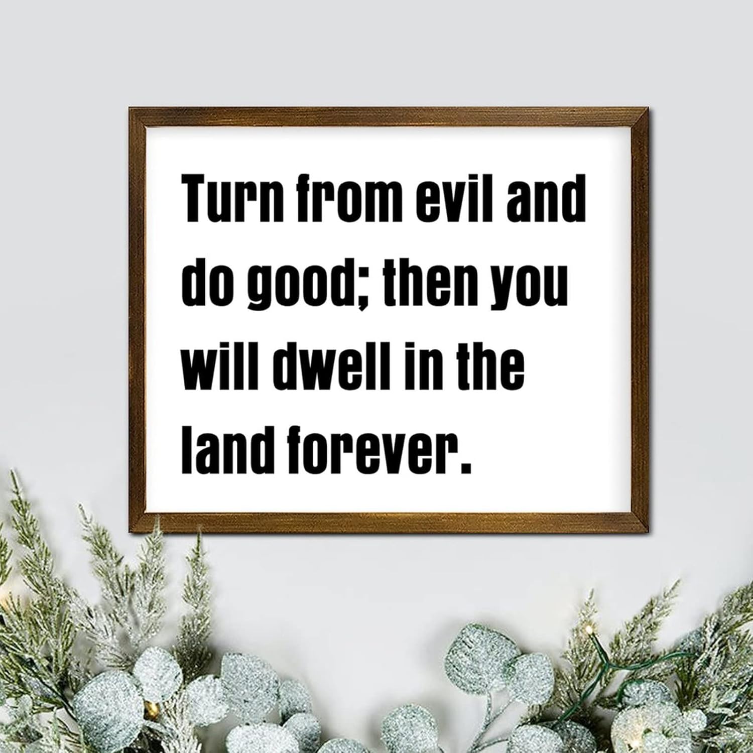 Framed Wood Sign Plaque Turn from Evil and Do Good Then You Will Dwell in The Land Forever Wooden Wall Art Positive Inspirational Quote Wood Framed Sign Family Rustic Home Decorations 16x20in