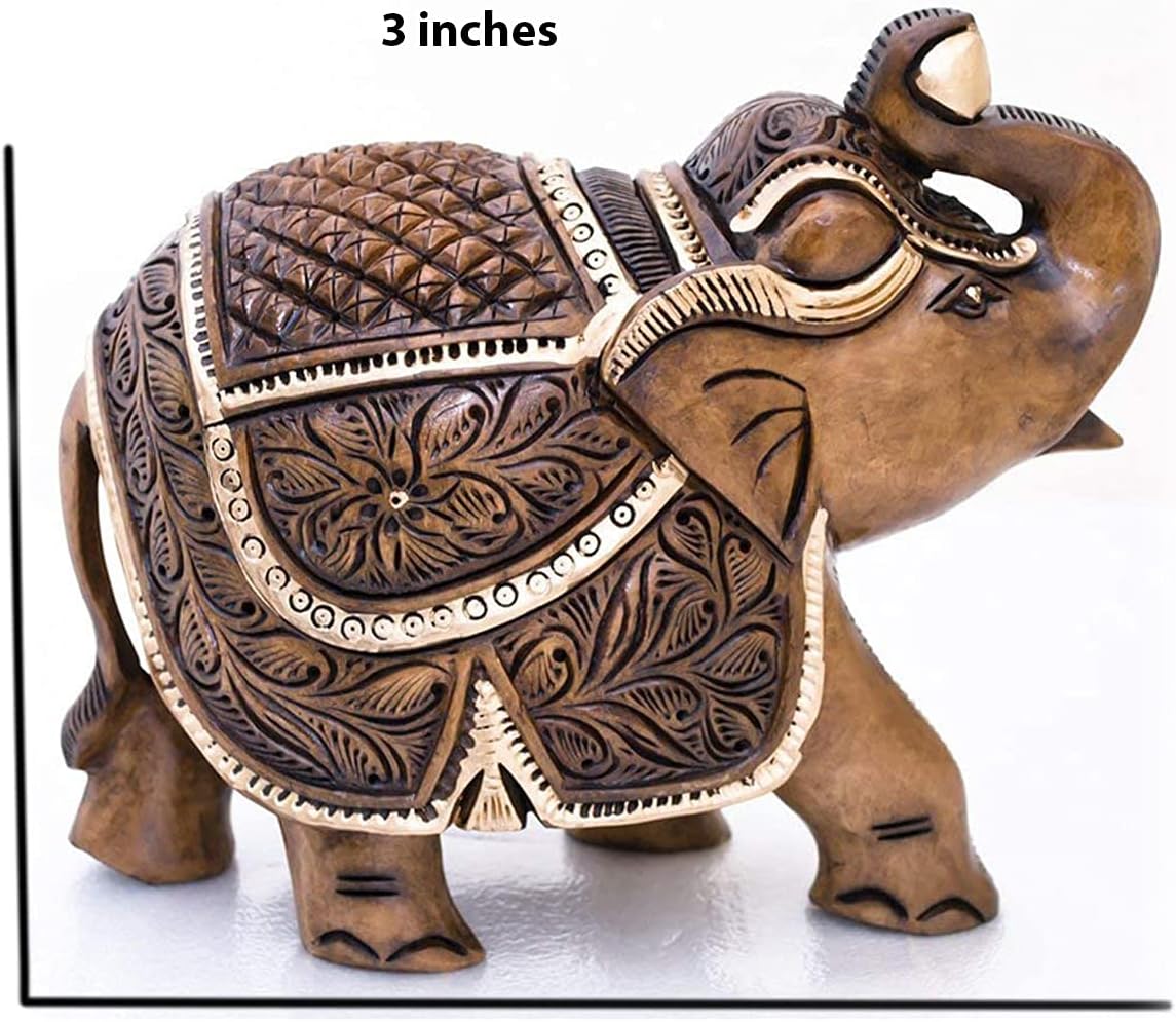 - Wooden Elephant Idol Feng Shui Good Luck Statue handmade 3 Inches home Decor