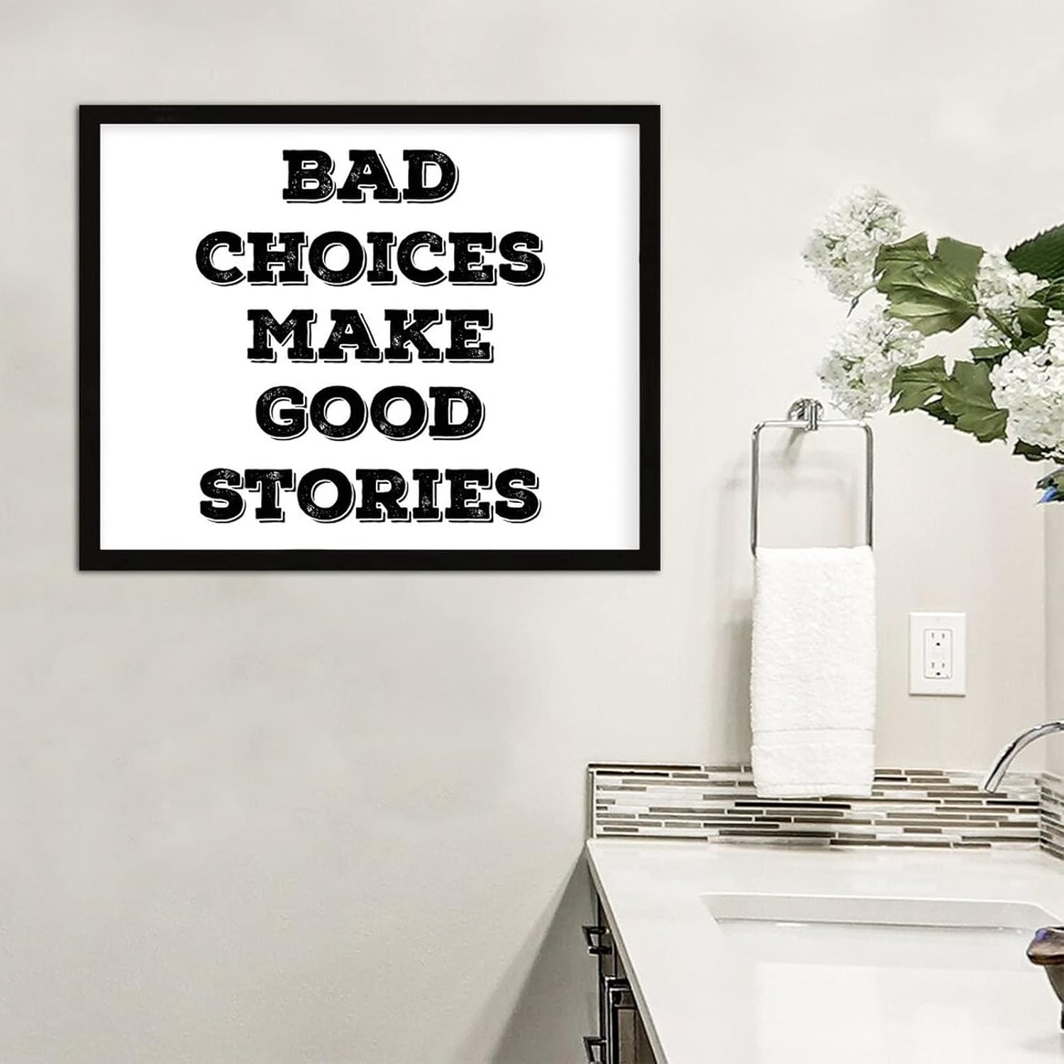 Hanging Framed Artwork Decoration Wooden Plaque Sign Bad Choices Make Good Stories Retro Wall Art Wood Plaque Sign 16×20 Inch Wooden Hanging Signs Home Decor for Room Front Porch