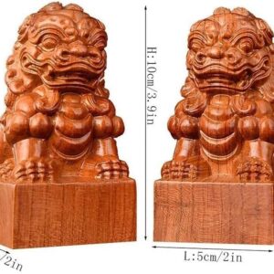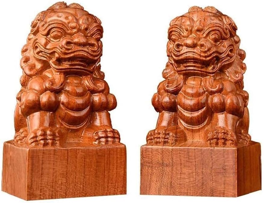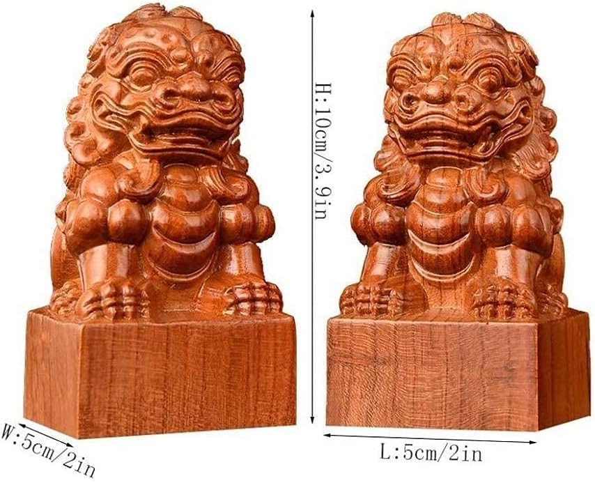 Large Ornaments Gardening Ornament,Pair Fu Foo Dogs Statues, Chinese Feng Shui Decor,Wooden for Home and Office, Attract Wealth and Good Luck,Best Gift Crafts Statue Sculpture Collectible Large