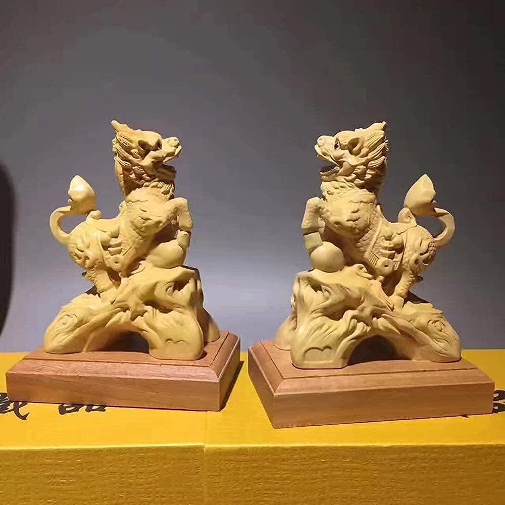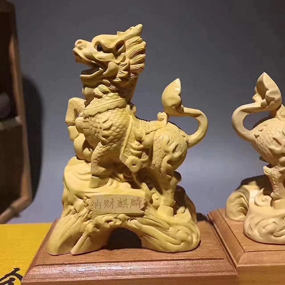 Large Ornaments Modern Decoration Sculpture,Statues Bathroom Ornament C Collectables Feng Shui Qilin/Statues Home Decoration Crafts A Pair of Attract Wealth and Good Luck Handmade Wooden Decor Pro