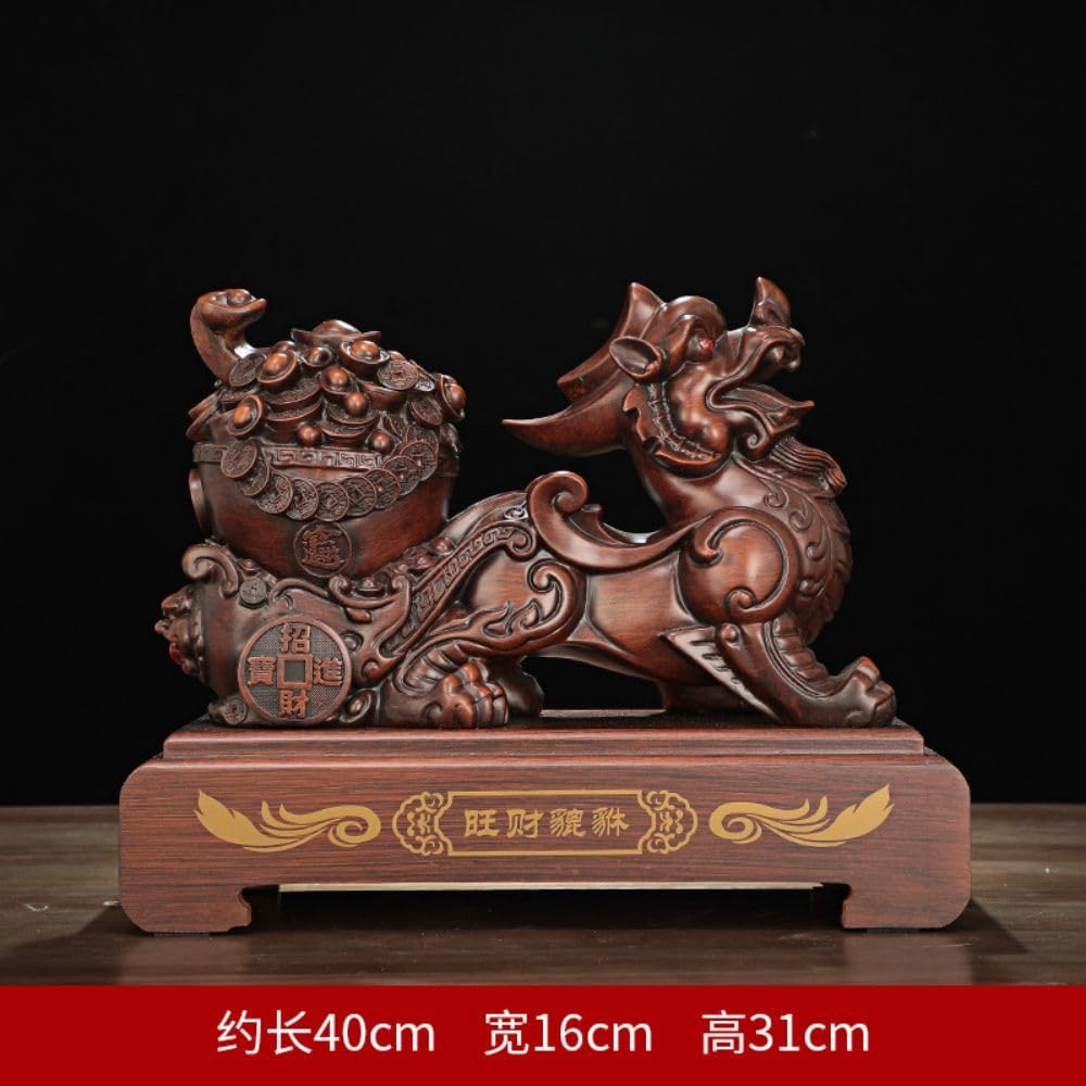 - 中号旺财 pi yao sculpture Golden Home Decoration Figurine 貔貅(木纹色) – Delivery style, accept note size color style