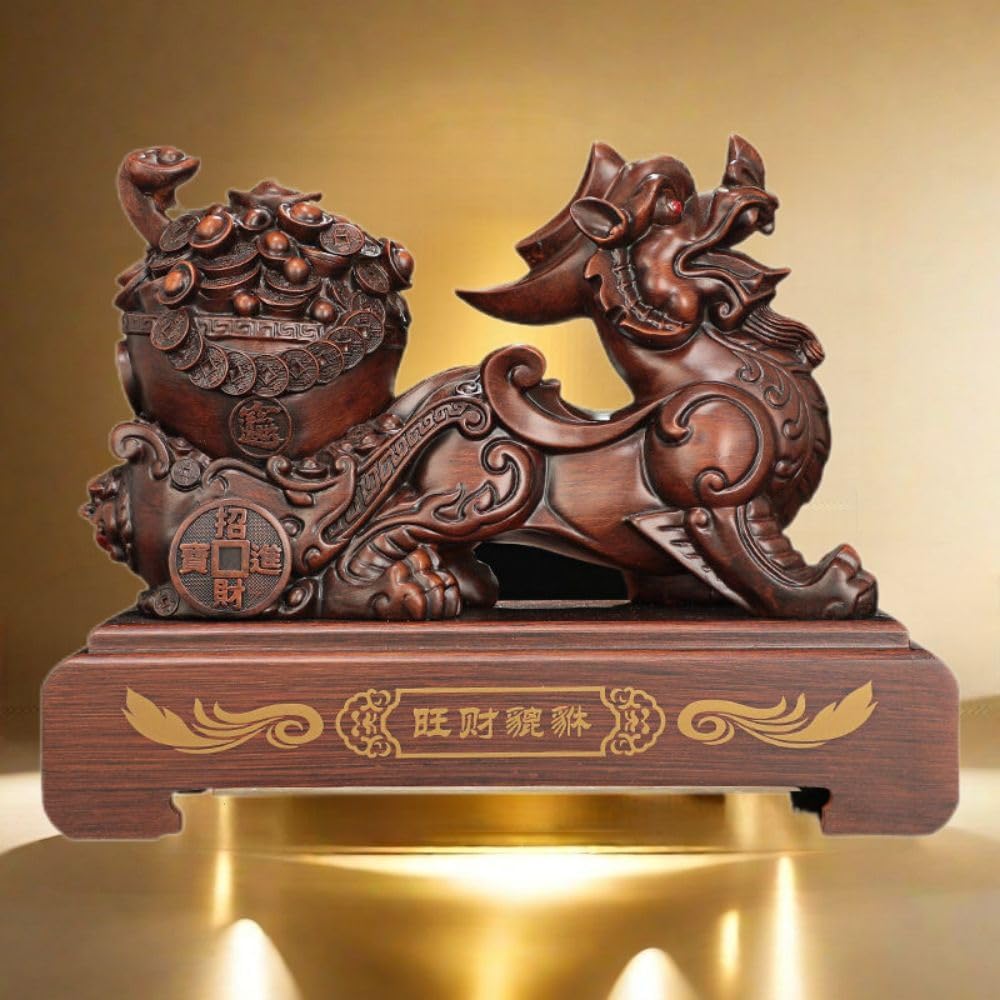 - 大号旺财 pi yao sculpture Golden Home Decoration Figurine 貔貅(木纹色) – Delivery style, accept note size color style
