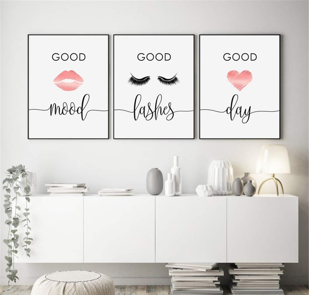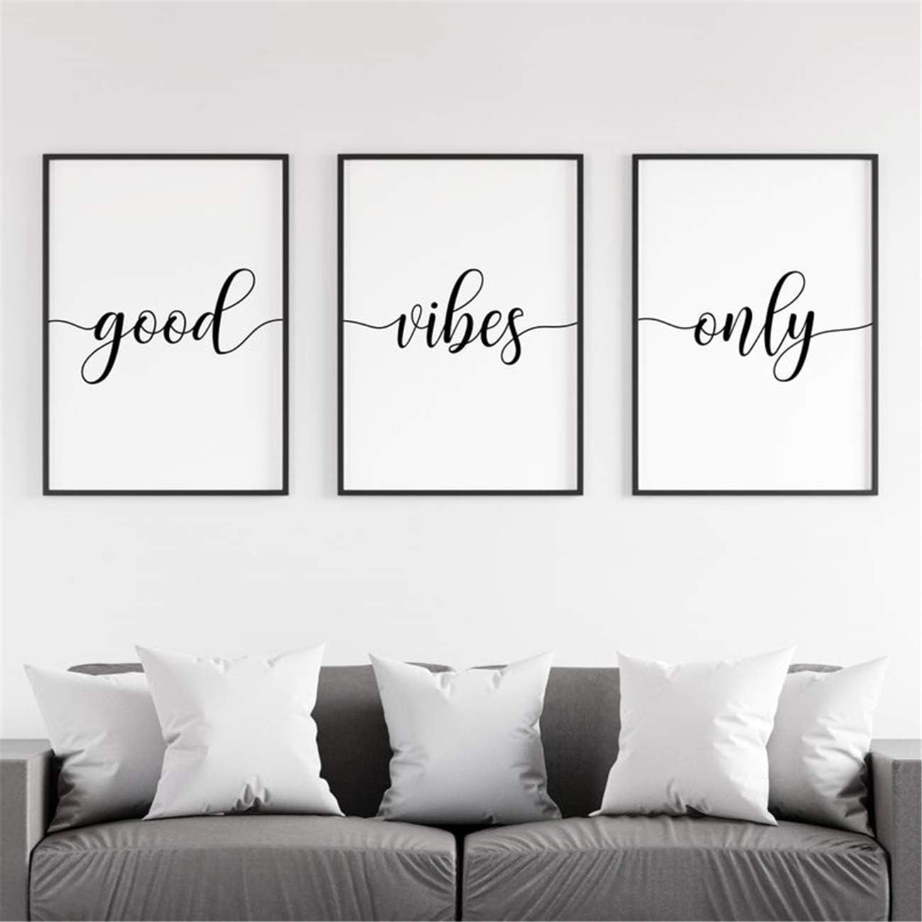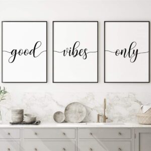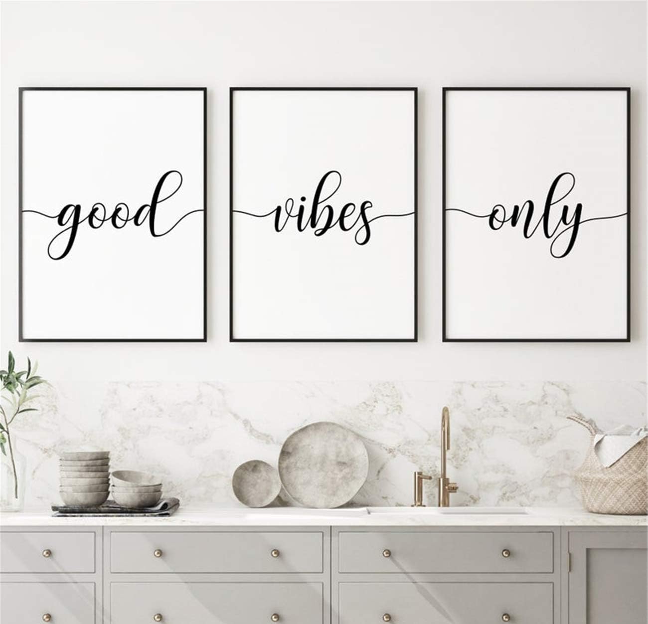 Poster and Prints Good Vibes Only Wall Art Canvas Framed Painting Artwork 3 Pieces Motivational Quotes Home Decoration for Living Room Bedroom With Wooden Inner Frame