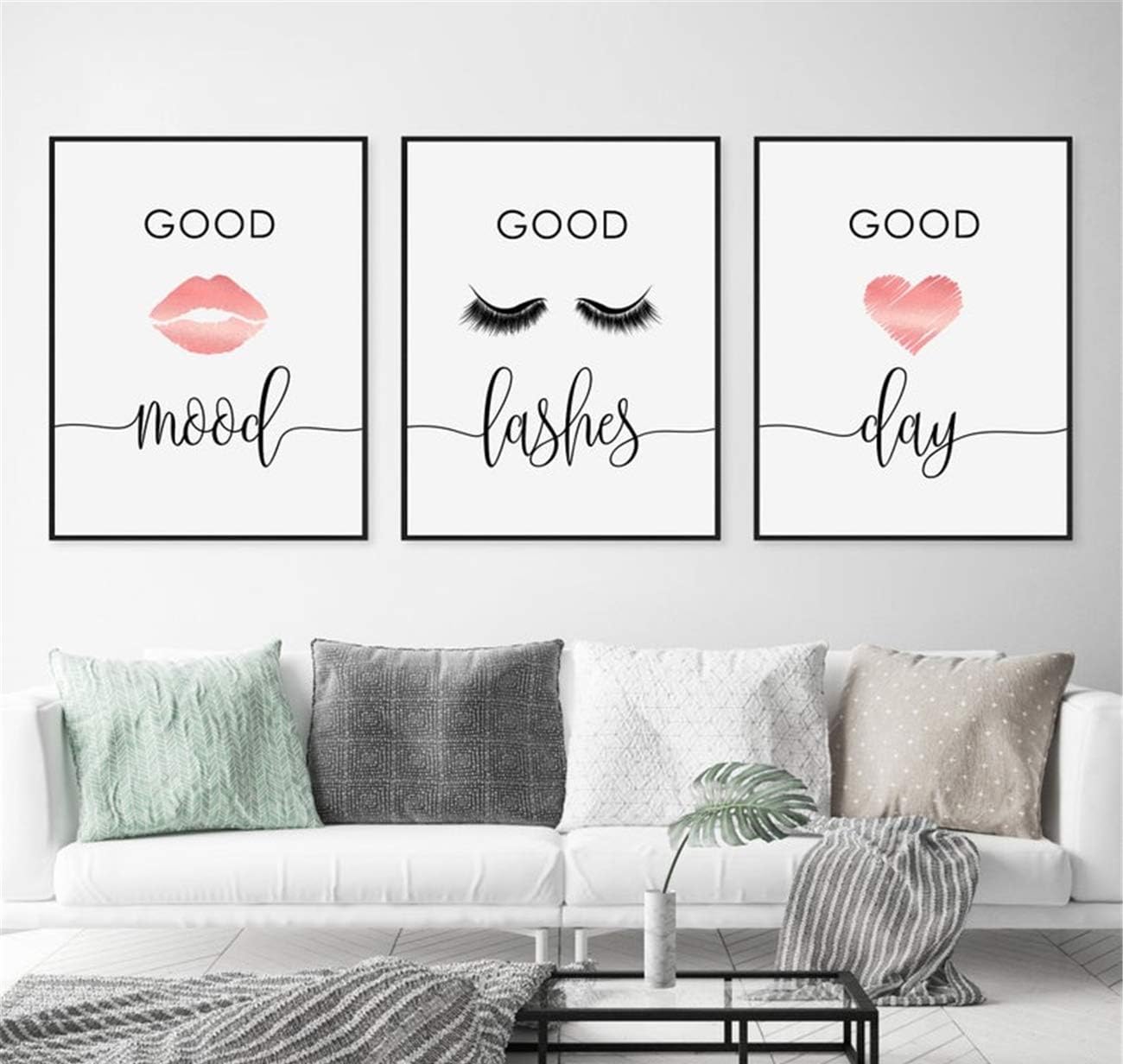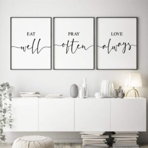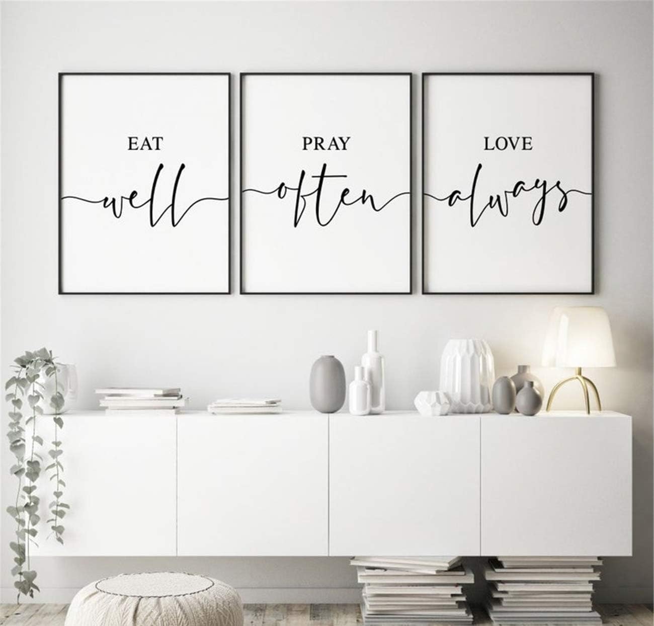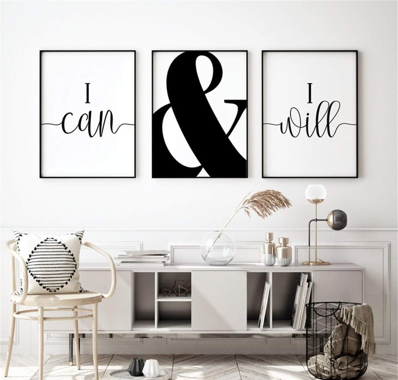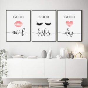 Poster and Prints Good Vibes Only Wall Art Canvas Framed Painting Artwork 3 Pieces Motivational Quotes Home Decoration for Living Room Bedroom With Wooden Inner Frame