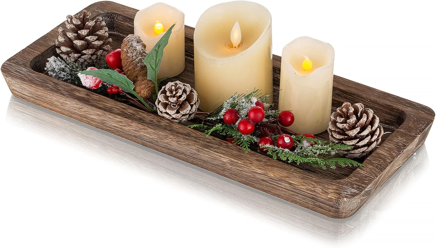 Romadedi Wooden Decorative Tray Candle Holder – Wood Long Narrow Tray Home Decor Small Rustic Centerpieces Trays for Coffee Table Dining Room Kitchen