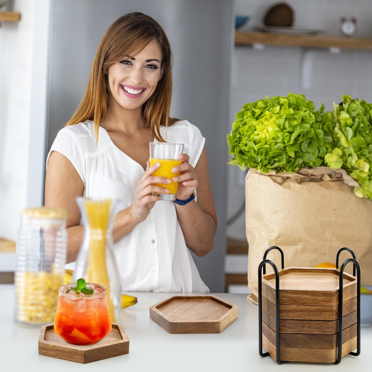 Black metal holder included to let you can organize coaster. While not in use, you can put them directly into the holder, which will make your home tidier.