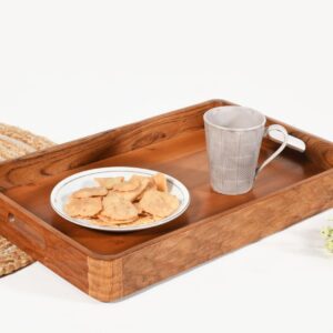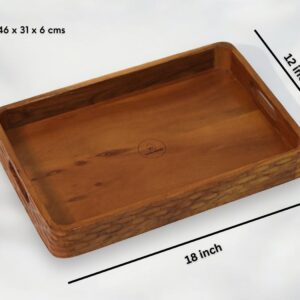 Vesta Homes Acacia Wood Serving Tray for Home\/Kitchen\/Restaurant\/Office Organizer\/Dining Table | Premium Serving Trays | 18 x 12 x 2.25 Inches | Handcarved in India