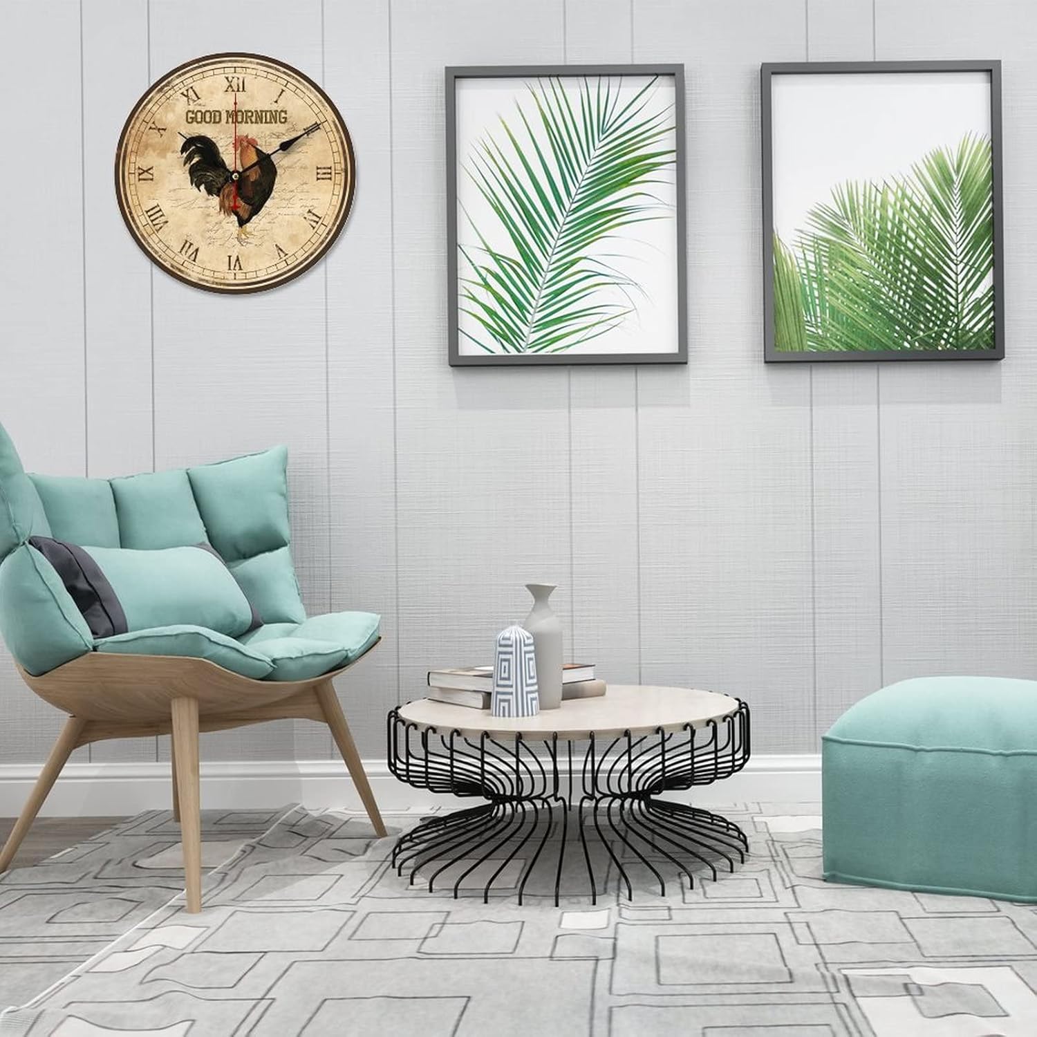 WengBeauty Good Morning Rooster Clock Cockerel Wooden Round Clock Farmhouse Pet Lover Housewarming Gift Quartz Battery Operated Decorative for Home Bathroom Bedroom 15″x15″