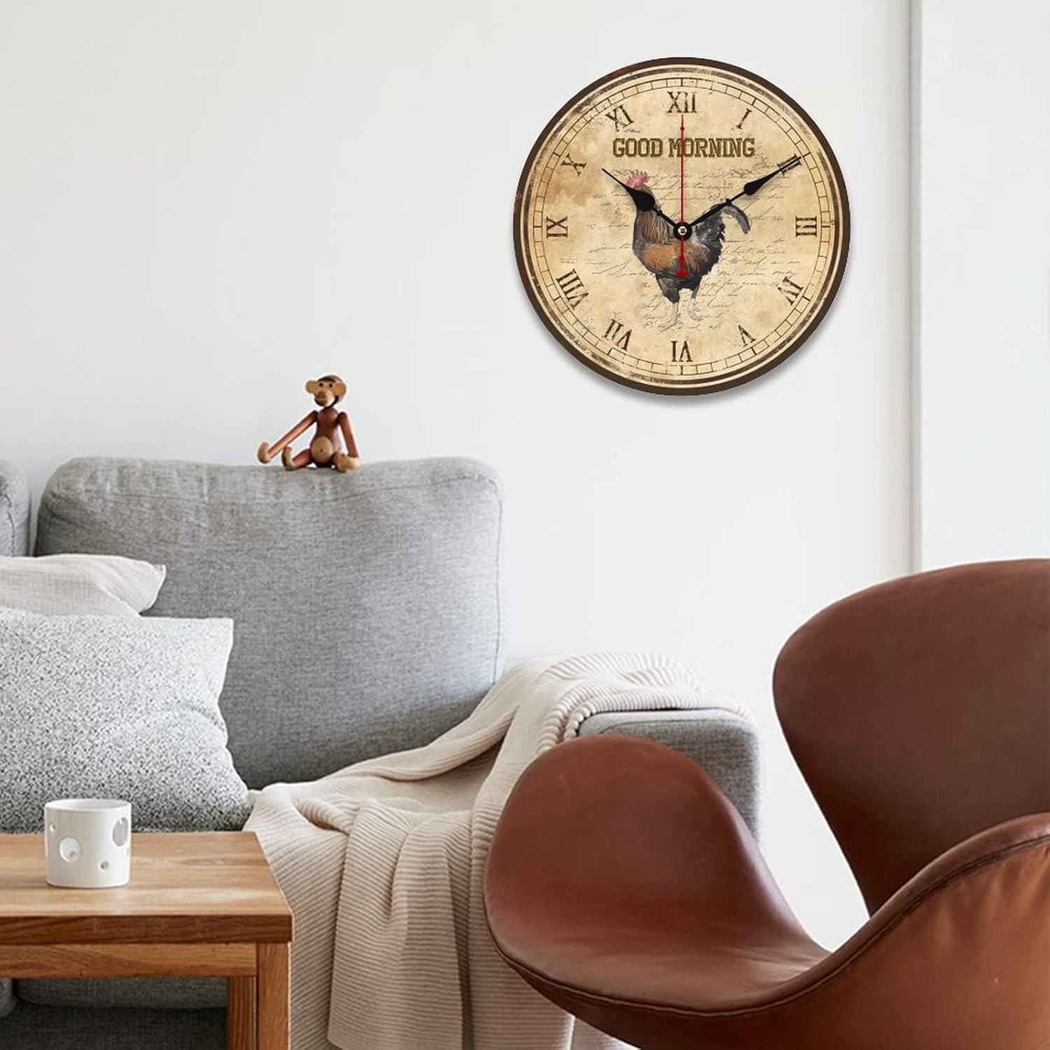 WengBeauty Good Morning Rooster Clocks Chicken Lover Wooden Round Clock Rustic Rooster Gifts for Rooster Lovers Non Ticking Silent Home Decor for Kitchen Bedroom 15″x15″