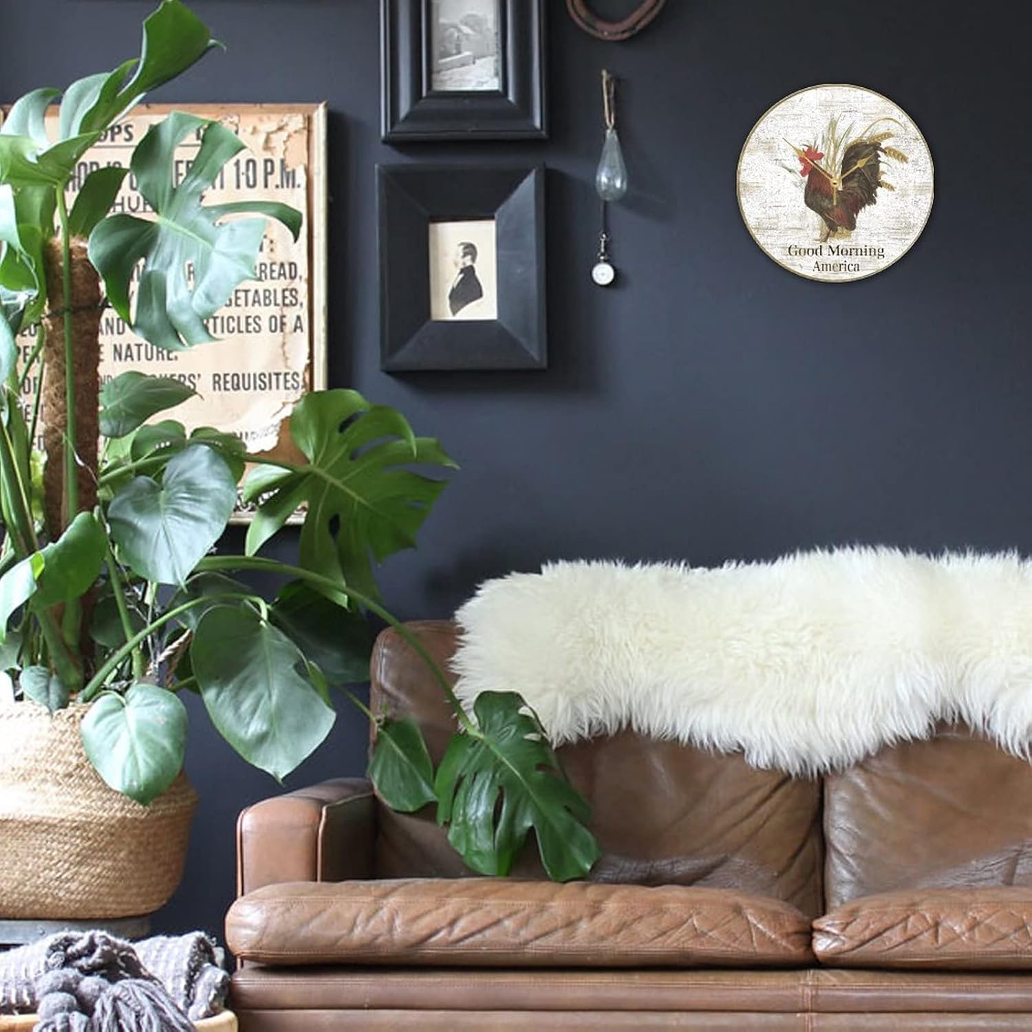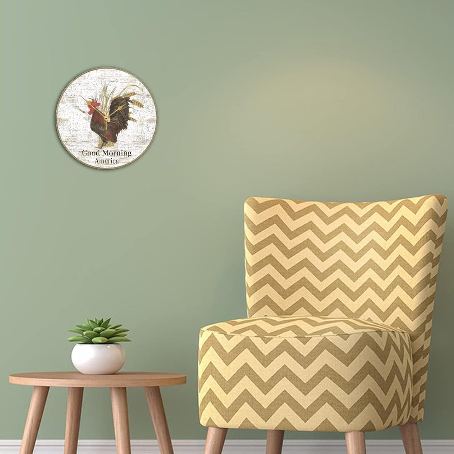 WengBeauty Rooster-Good Morning America Clock Chicken Lover Wooden Round Clock Retro New Home Owner Gift Silent Non Ticking Living Room Kitchen Home Bathroom 15×15 inches