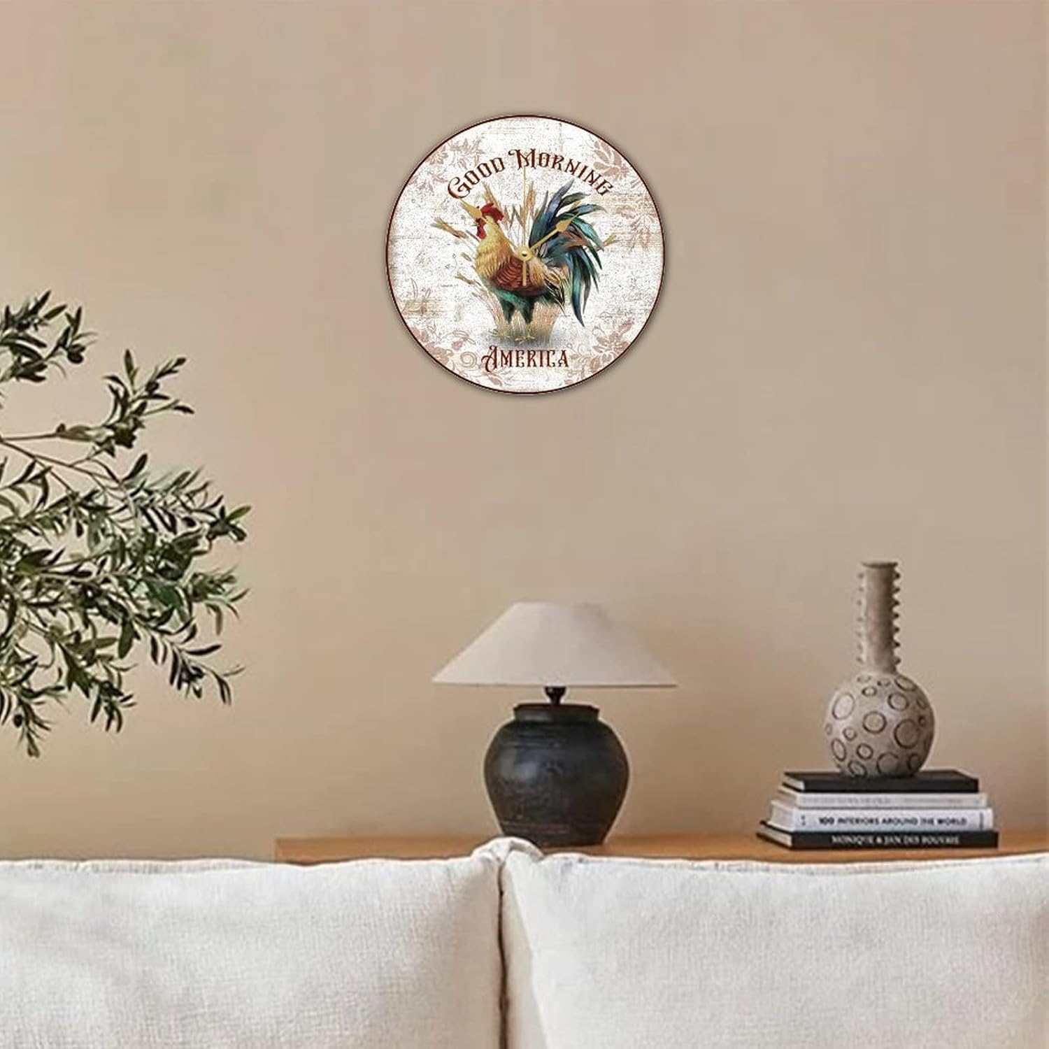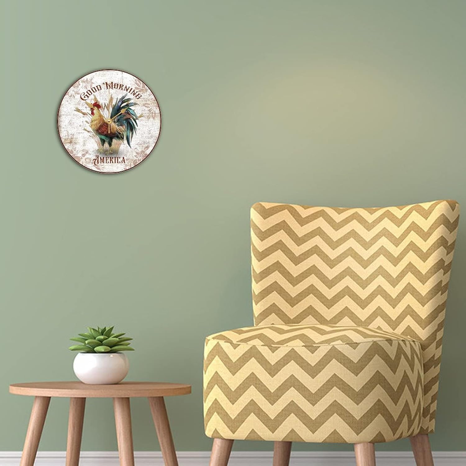 WengBeauty Rooster-Good Morning America Wall Clocks Farm Bird Rooster Wooden Round Clock Farmhouse Chicken Lover Gift Silent Non-Ticking Home Decor for Kitchen Bedroom 15×15 inches