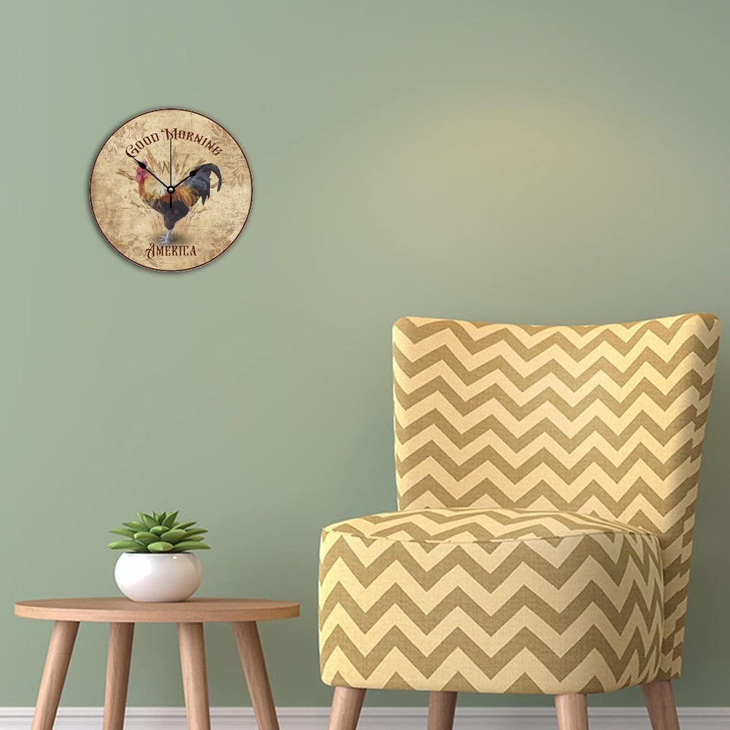 WengBeauty Rooster-Good Morning America Wall Clocks Morning Rooster Wooden Round Clock Vintage Pet Lover Gift Battery Operated Living Room Kitchen Home Bathroom 15×15 inches