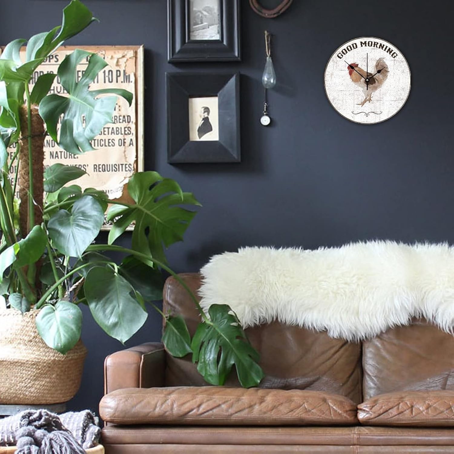 WengBeauty Rooster – Good Morning Wall Clocks Rural Crowing Cock Wooden Round Clock Retro New Home Owner Gift Silent & Non-Ticking Decorative for Home Bathroom Bedroom 15×15 inches