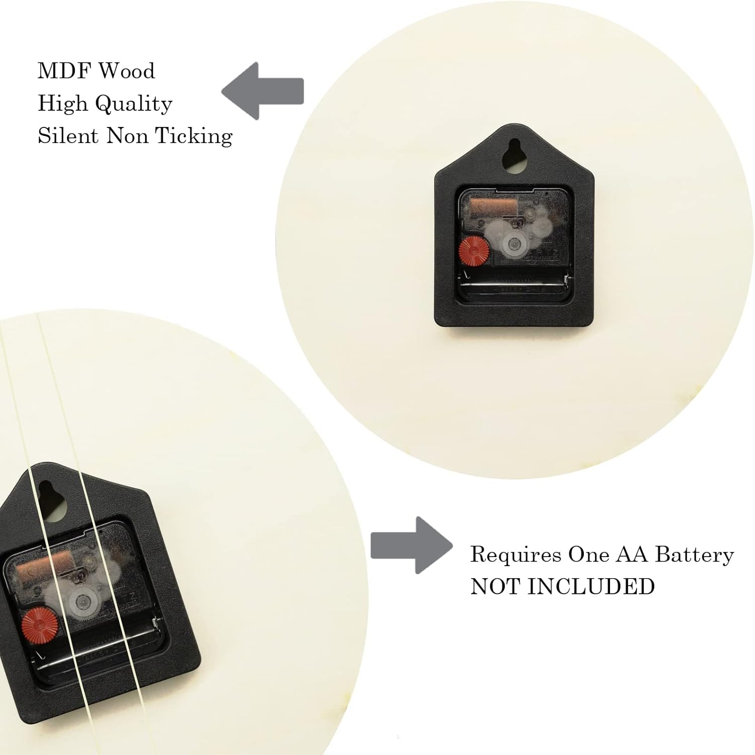 - WOODEN WALL CLOCK: Made of MDF wood . No frame nor glass cover. Ideal decor for living room, bedroom, kitchen, bathroom, office, classroom, guest room, computer room, library or any wall you want to hang.
