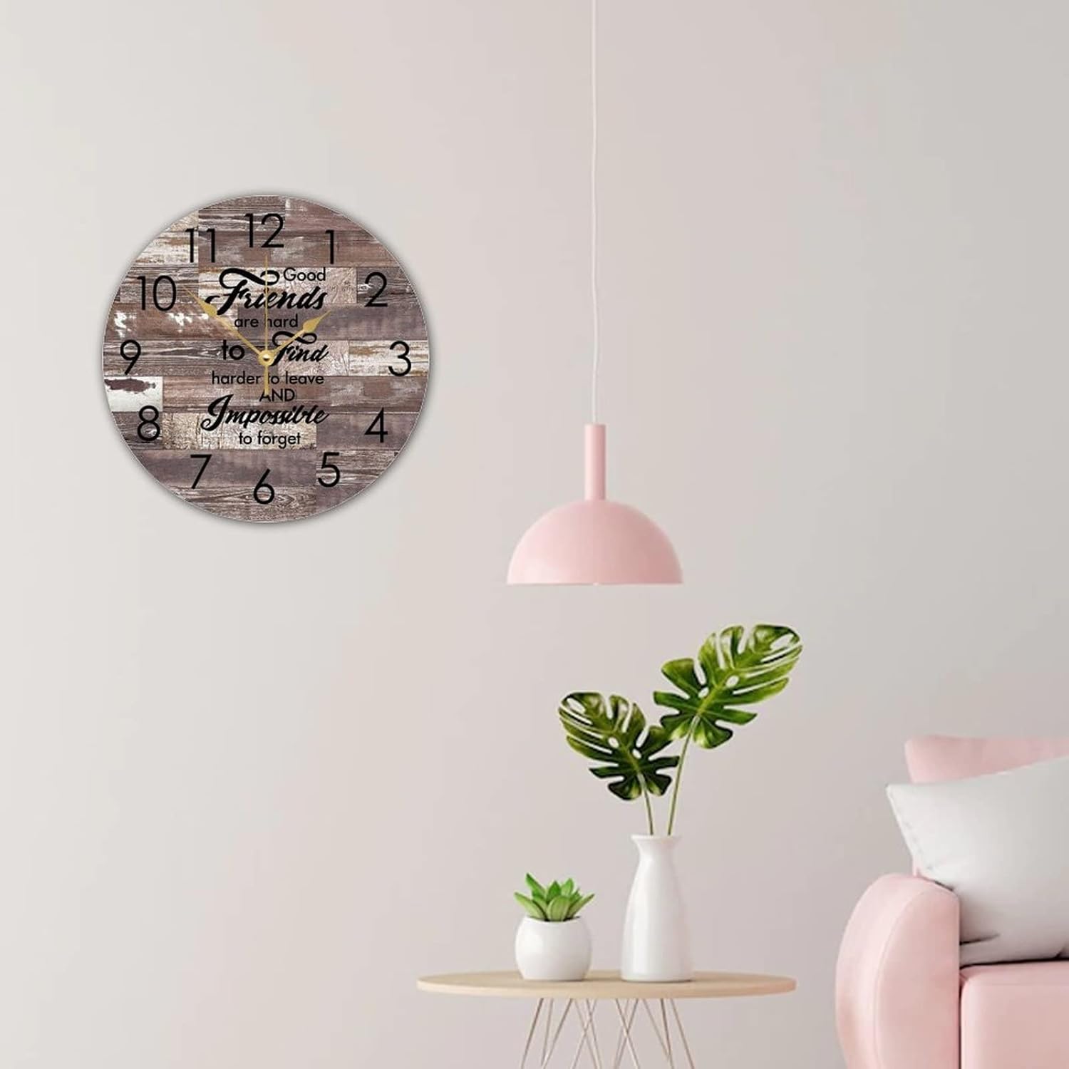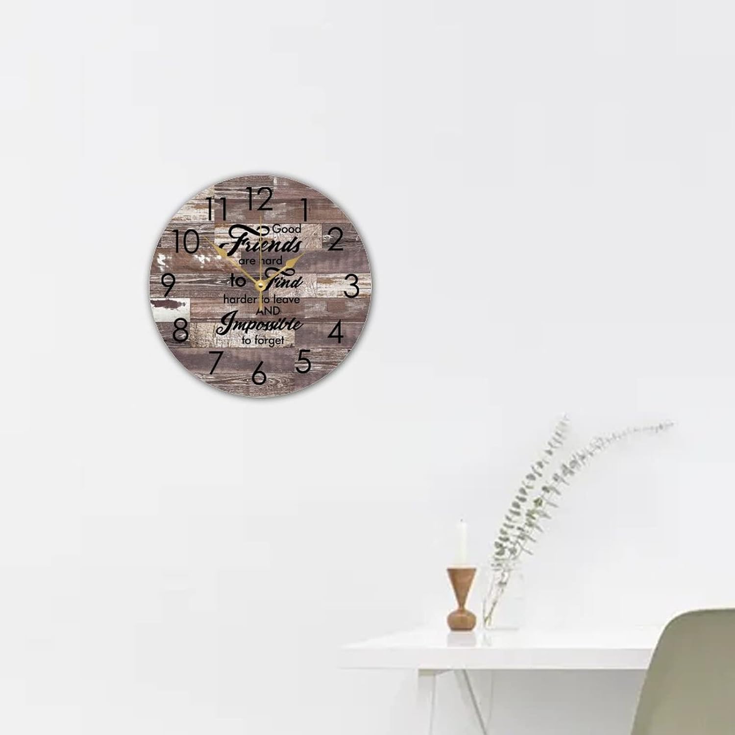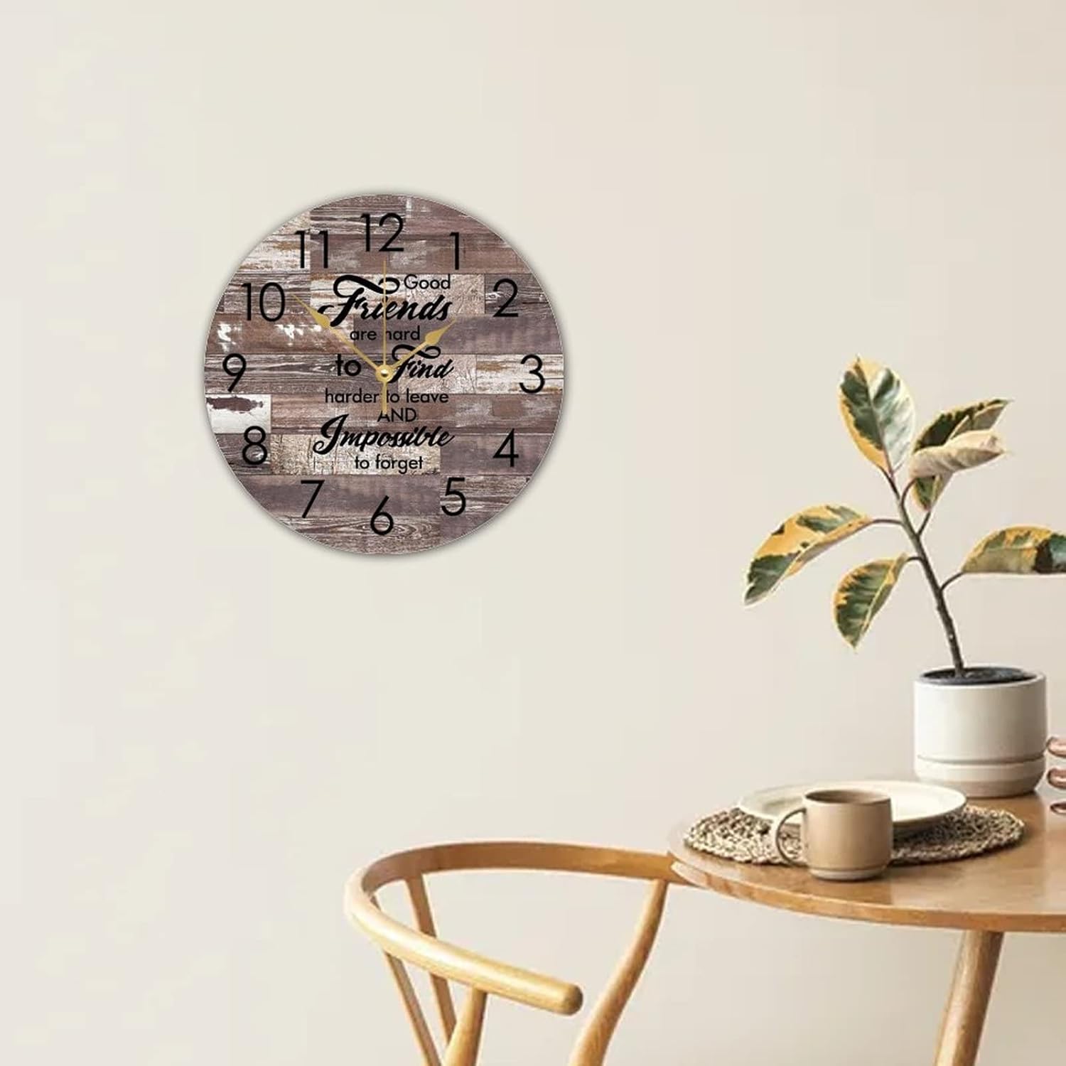 WengBeauty Wooden Round Wall Clock Good Friends are Hard to Find,harder to Leave Wall Clocks Bestie Gifts Clock Quartz Battery Operated for Home Dining Room Laundry Room Front Door 15″x15″
