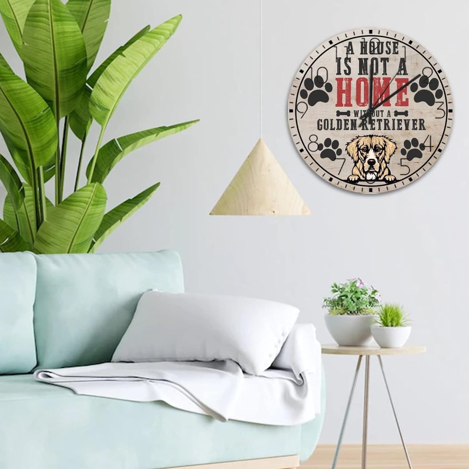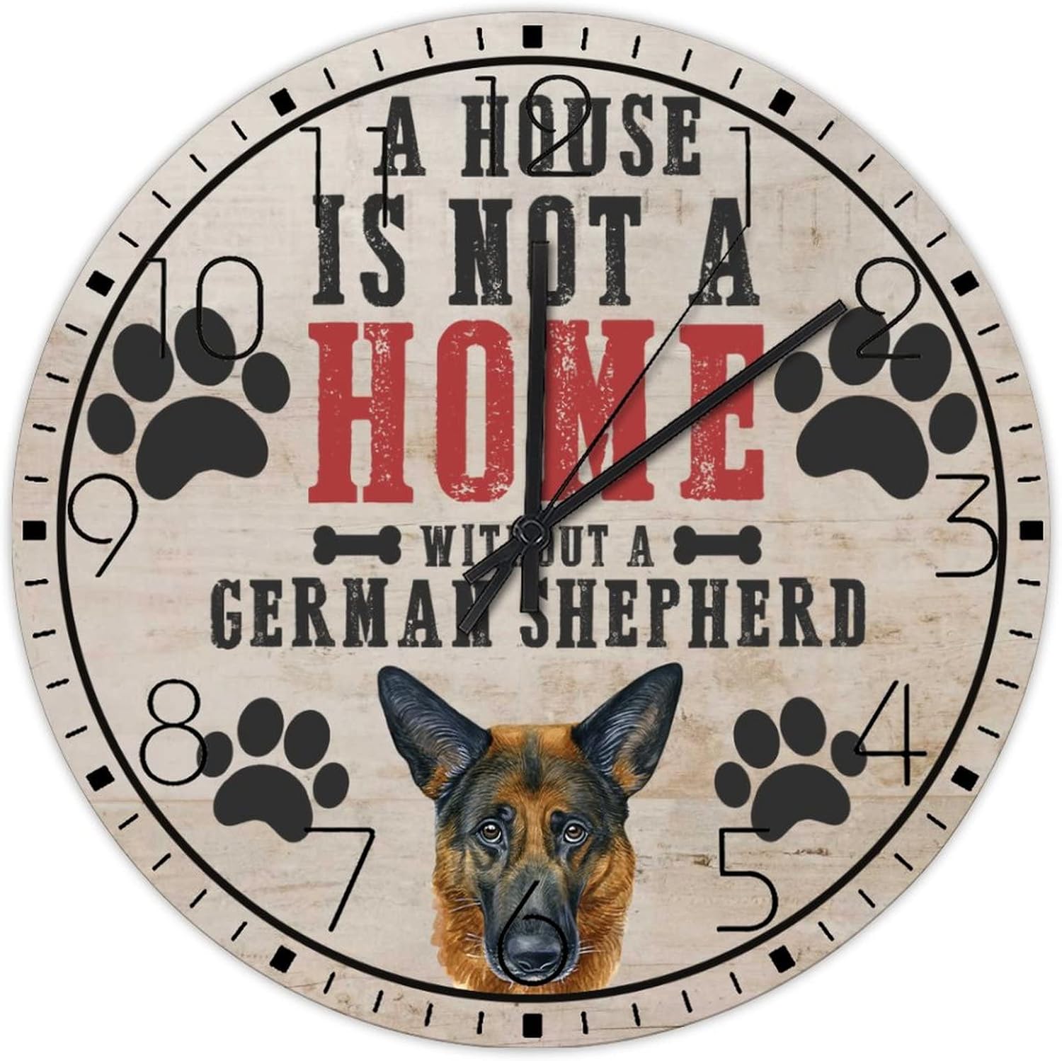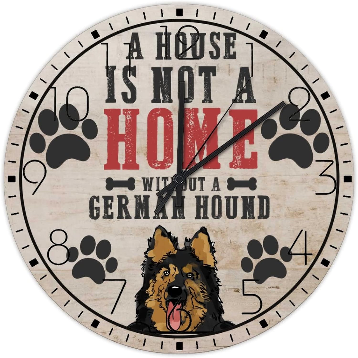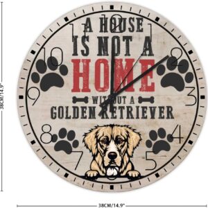 Wooden Wall Clock Analog Round Non-Ticking A House is Not A Home Without A Dog Personalized Wall Clocks Pet Owners Good Friends Wall Decor for Family Room Living Room Above Fireplace 15 Inch